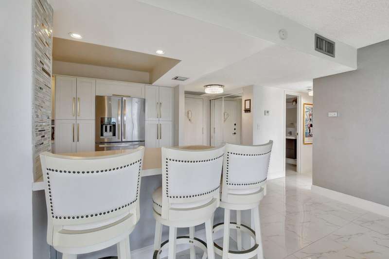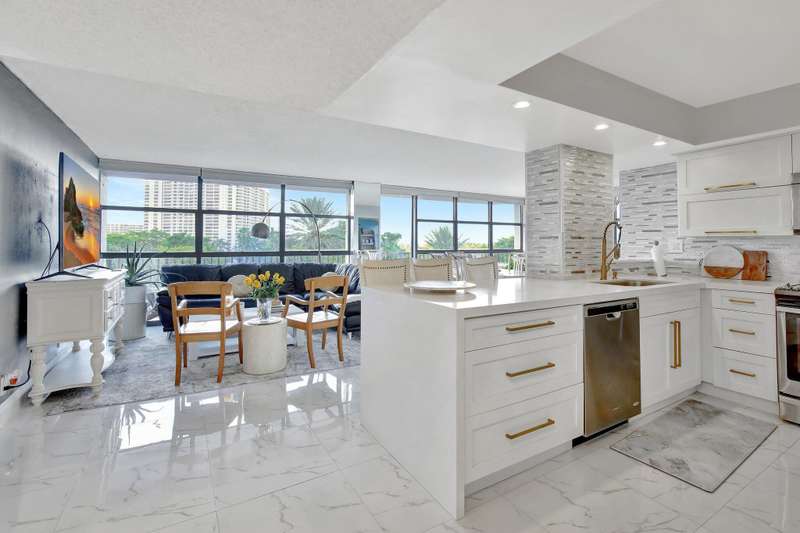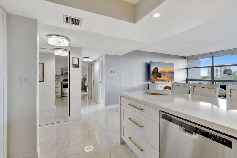This stunning 3 bed 2 bath condo located in a beautiful Intra-coastal community offering breathtaking sunsets from your wraparound balcony. The home has been adorned with exquisite modern finishes including marble flooring, spectacular white on white kitchen with gorgeous glass tile full back-splash, stainless appliances & quartz counter-top w/ waterfall feature. Floor to ceiling windows provide tons of natural light. Renovated baths. The community features a wide range of amenities, including a fitness center, cardio studio, yoga/boxing, tennis, club-room, library, billiards, sauna, etc. Bask in the sun or take a swim in the pool while enjoying the gorgeous intra-coastal views. Country Club membership is available at the Diplomat Hotel & Spa. Live & Play today!