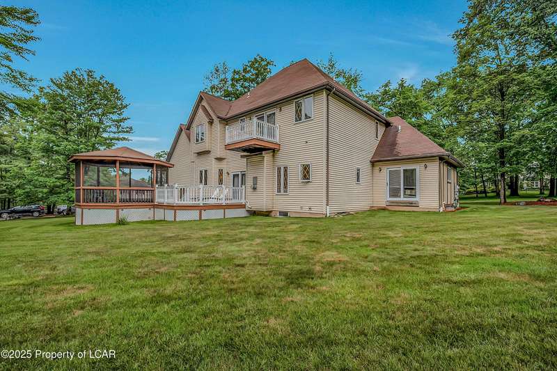 Stately Tudor style 5 bed 5 bath home on a 1+ acre private lot located in one of Mountain Top's most desirable neighborhoods. Home Features: Granite Kitchen, First Floor Bedroom with En Suite Bathroom, Spacious Primary Bedroom Suite on 2nd Floor with Balcony, First Floor Laundry, Finished Lower Level, and Newer Trex Deck.