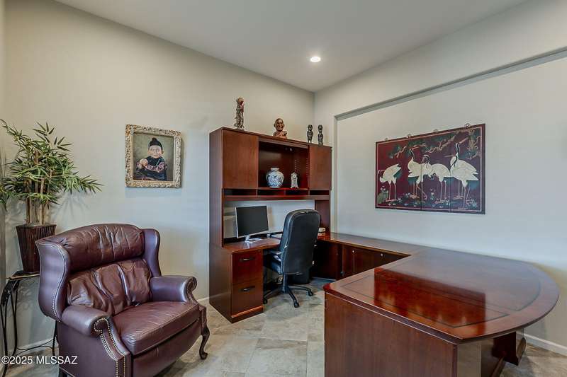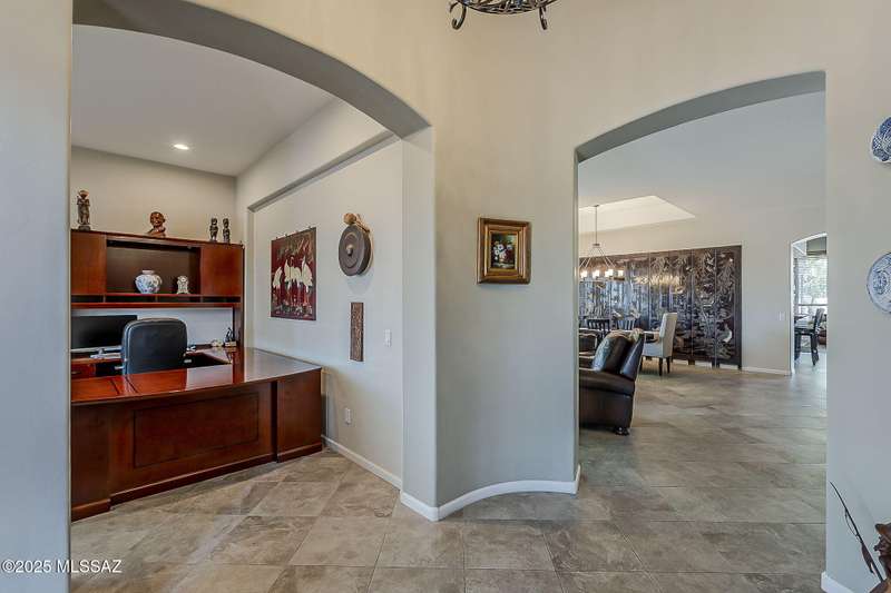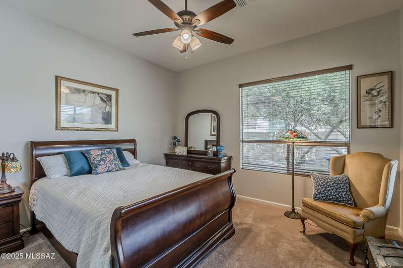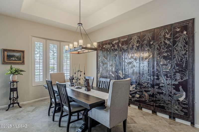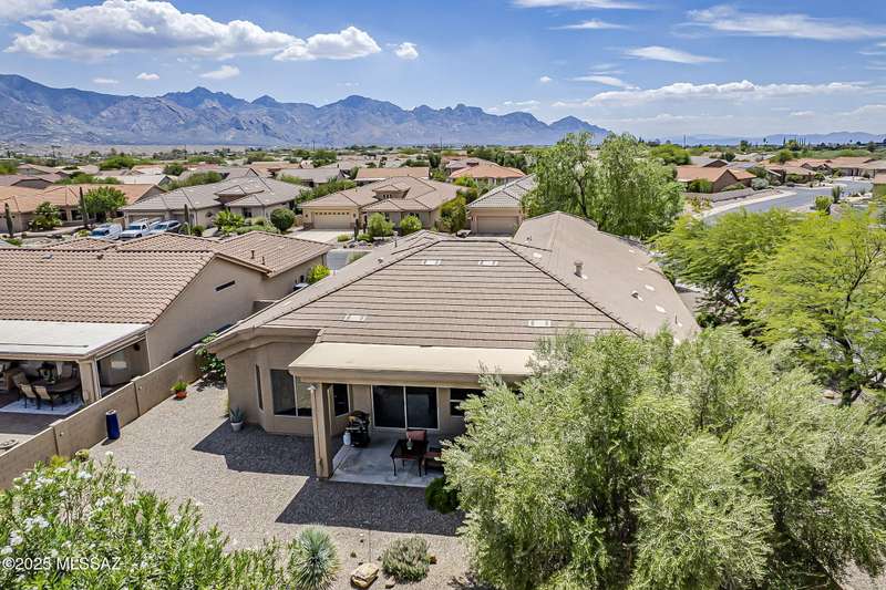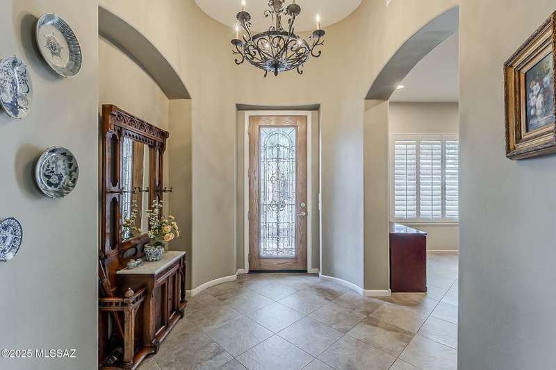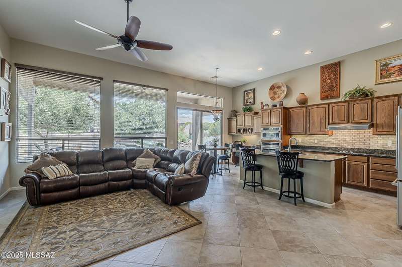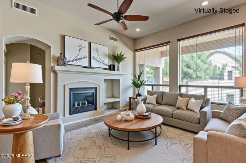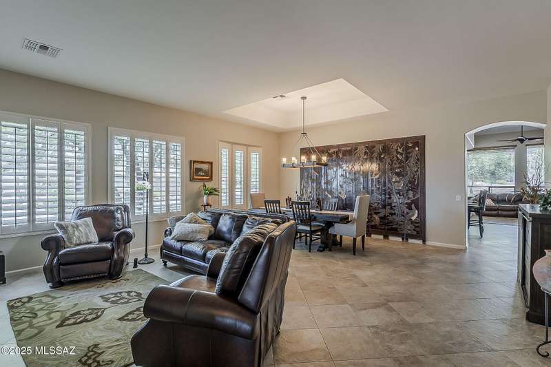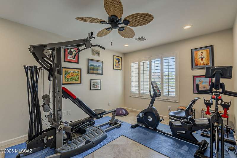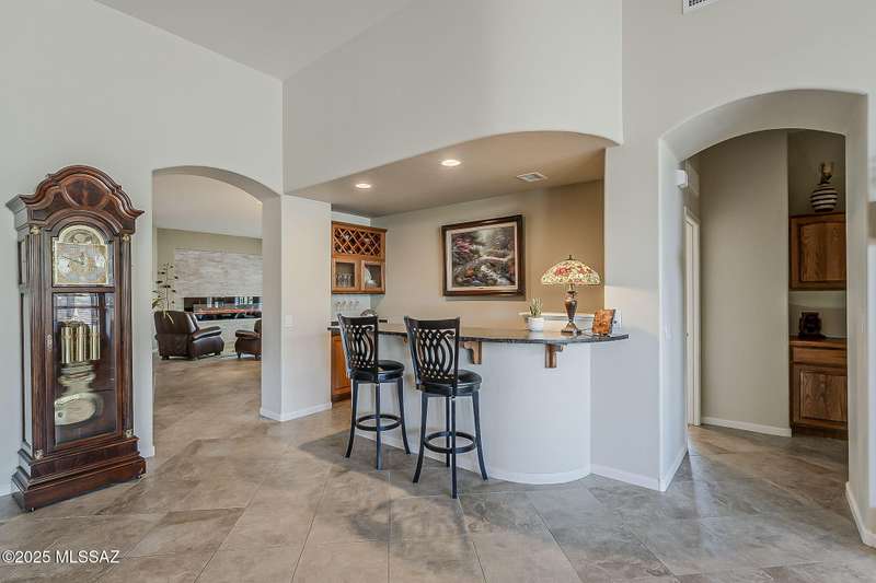 Large quiet corner lot w/private yard, side mtn views, CHEYENNE model offers space, style, and flexibility. Gated front entry w/fountain welcomes you. Bonus fitness room - CONVERTIBLE to GOLF GARAGE with seller credit. Entertainer's kitchen shines with GE Cafe(c) SS appliances, quartz counters, island, wet bar, and open to family room w/gas fireplace and options for TV location. A contemporary stacked rock wall w/electric fireplace highlights the living room. The primary suite features dual closets, dual vanities, soaking tub, walk-in shower, & spacious bedroom. Split floor plan includes 2 guest rooms plus bathroom. Office/den at the front of house. Extended garage w/cabinets, large laundry, powder room, 18'' tile flooring thru living space, and carpet in bedrooms complete this gem.