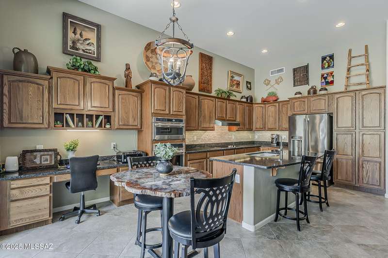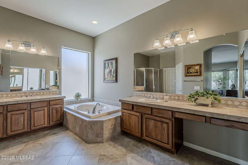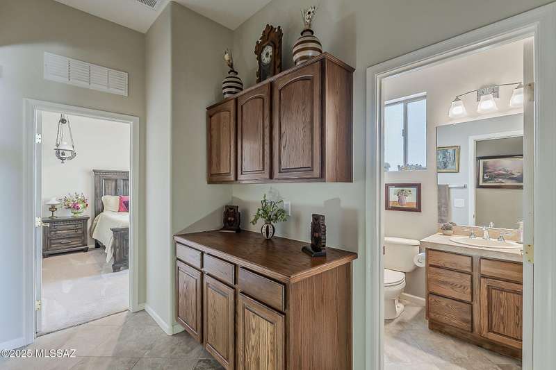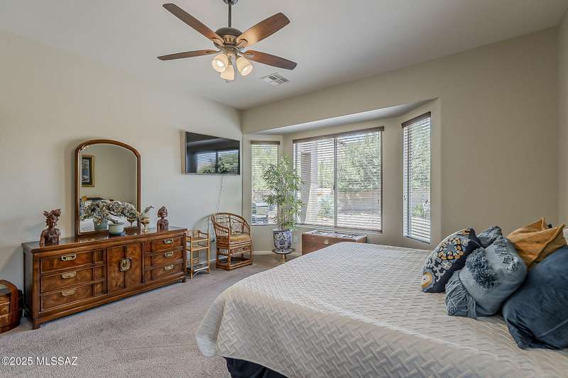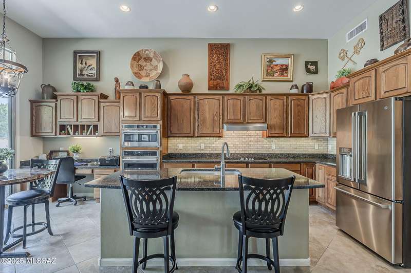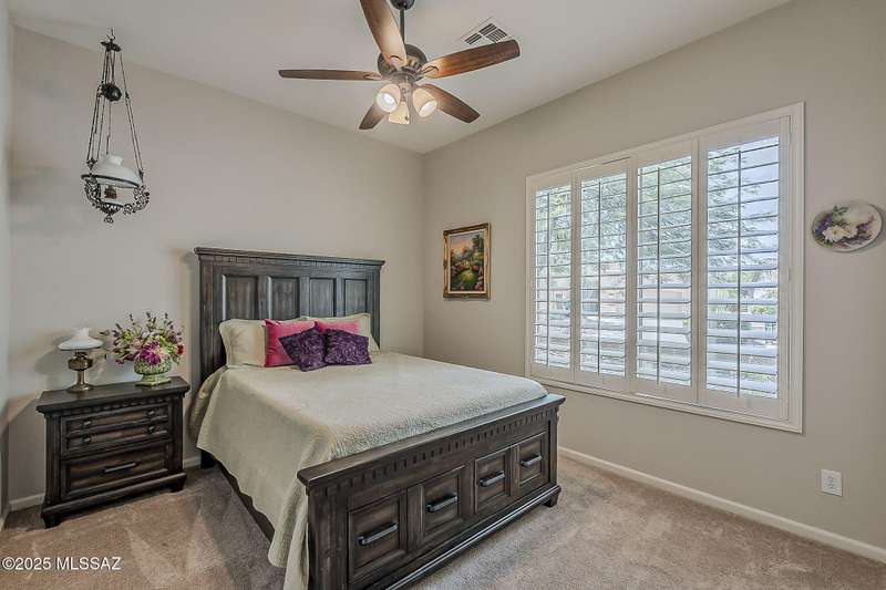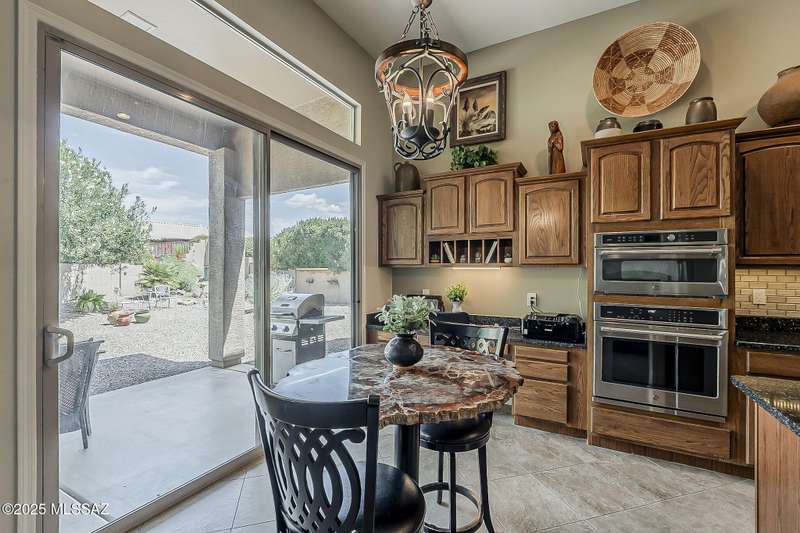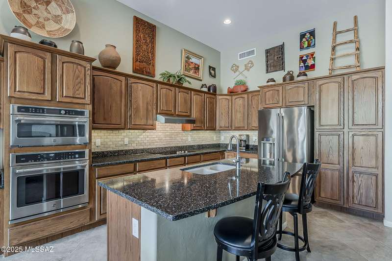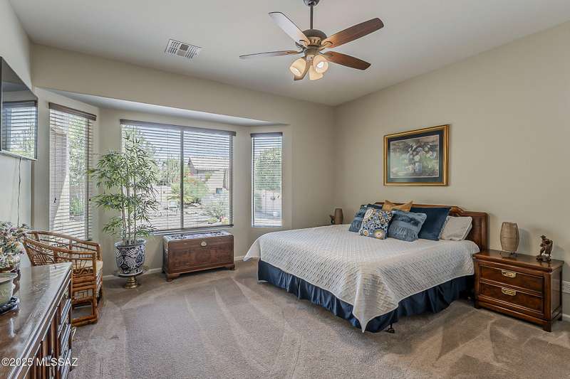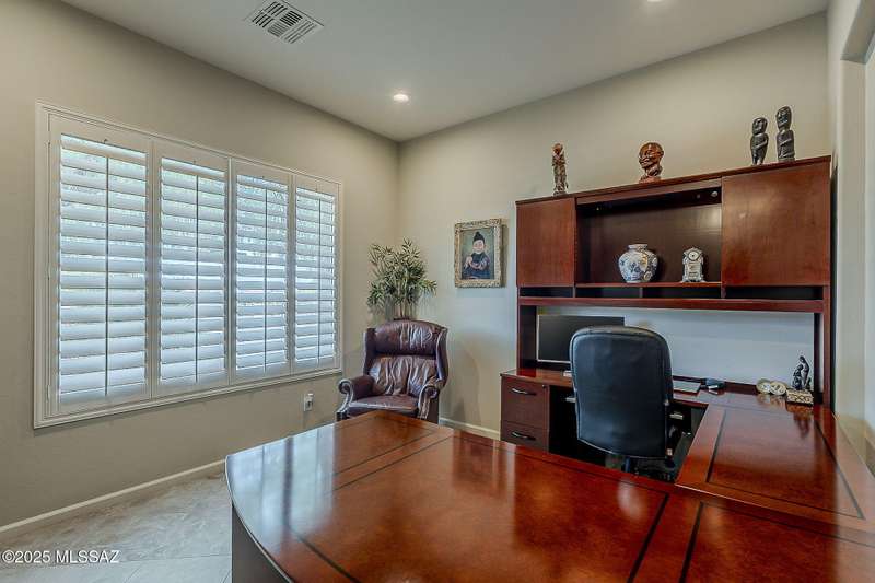 Large quiet corner lot w/private yard, side mtn views, CHEYENNE model offers space, style, and flexibility. Gated front entry w/fountain welcomes you. Bonus fitness room - CONVERTIBLE to GOLF GARAGE with seller credit. Entertainer's kitchen shines with GE Cafe(c) SS appliances, quartz counters, island, wet bar, and open to family room w/gas fireplace and options for TV location. A contemporary stacked rock wall w/electric fireplace highlights the living room. The primary suite features dual closets, dual vanities, soaking tub, walk-in shower, & spacious bedroom. Split floor plan includes 2 guest rooms plus bathroom. Office/den at the front of house. Extended garage w/cabinets, large laundry, powder room, 18'' tile flooring thru living space, and carpet in bedrooms complete this gem.