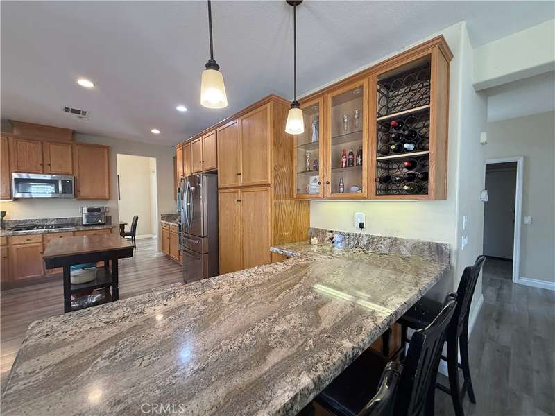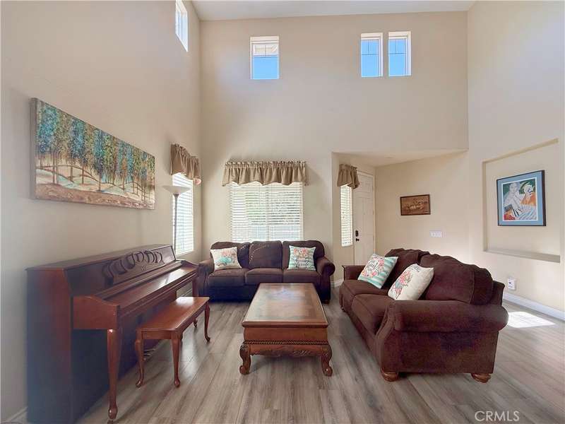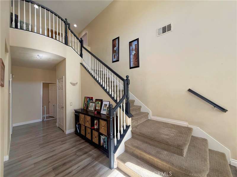 5 BEDROOMS ! CUL-DE-SAC! 3 CAR GARAGE! GATED COMMUNITY! This 5 bedroom home is located in the popular GATED COMMUNITY of LEGACY at Bryant Ranch ~ This gorgeous two-story home features a highly sought after DOWNSTAIRS BEDROOM and 3/4 bathroom ~ Stunning living room features 2 story ceilings with abundance of windows giving this room lots of natural light ~ Formal dining room is spacious enough for large dinner gatherings ~ Neutral decor and vinyl flooring gives this interior a contemporary feel ~ Incredible kitchen has granite counters, custom cabinetry, gas cooktop and convenient counter seating ~ Kitchen opens to a family room with built-in media center and fireplace ~ Primary suite features oversized closet and ensuite bathroom that has dual vanity sinks, sunken tub, walk in shower and privacy toilet ~ Additional 3 bedrooms are ample in size and share a hall bathroom ~ 3 CAR ATTACHED garage ~ Convenient inside laundry room ~ SOLAR PANELS (seller owned) ! ~ Covered patio with BBQ and newer vinyl fencing ~ Situated on a single loaded street lined with Pomegranate trees ~ The legacy offers a pleasant lifestyle with 70 homes, security gate at the entrance, playground and hiking trails!
