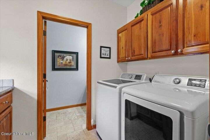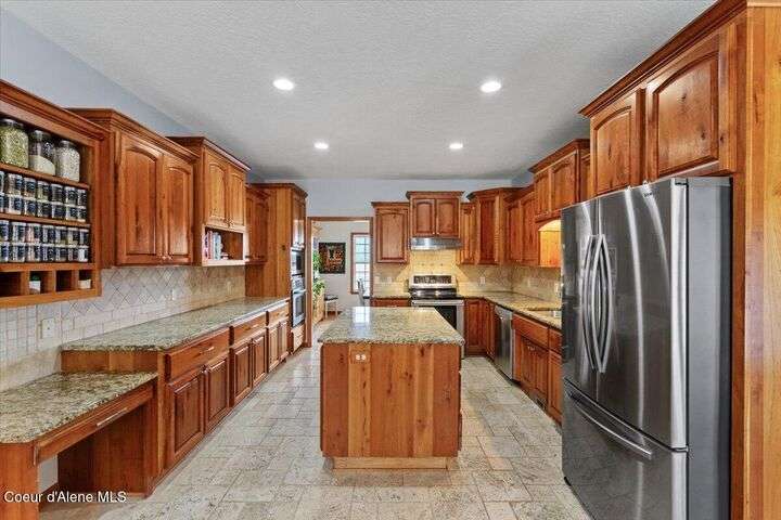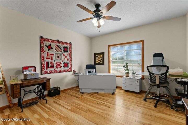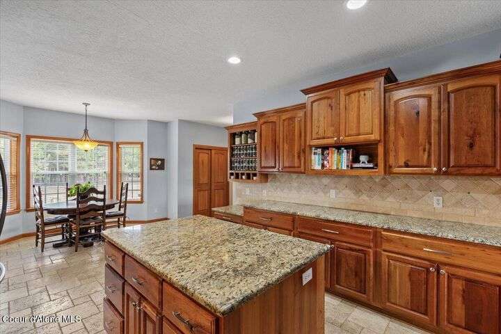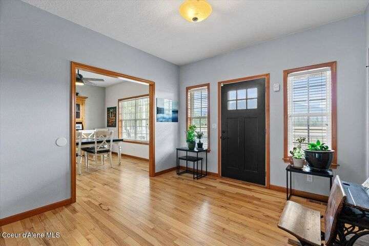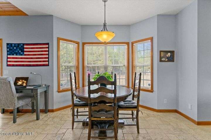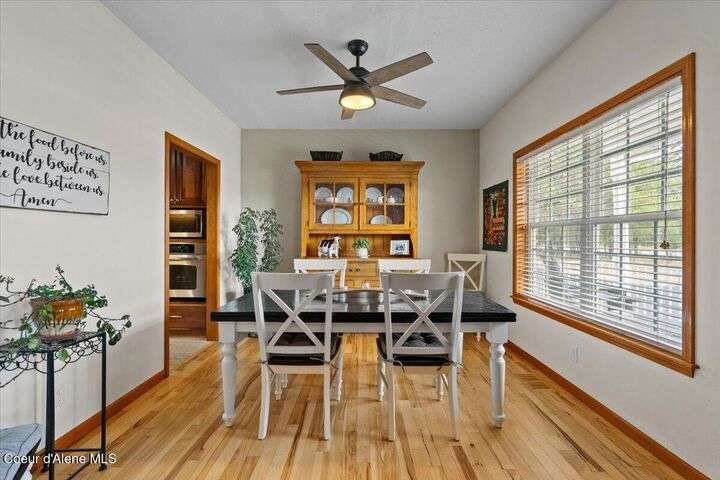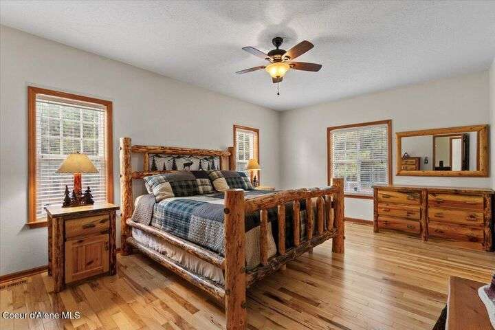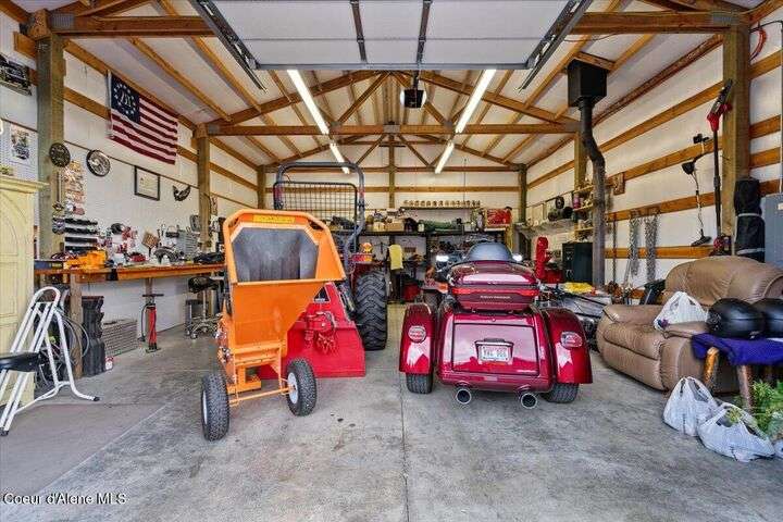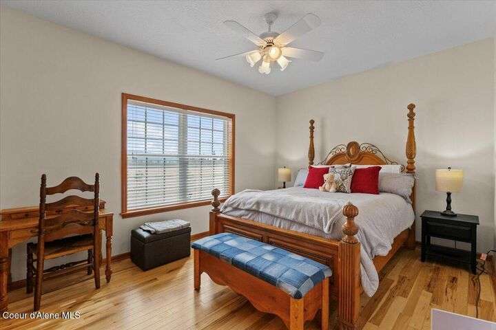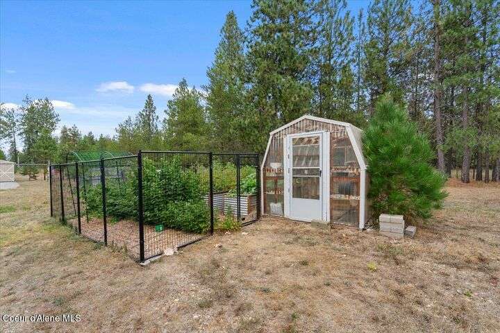 Custom Home with 2 Shops & Stunning Mountain Views across a field where wildlife roam! Enjoy main floor living with an open-concept design featuring a spacious great room with cozy stove and knotty pine ceiling. Hickory hardwood floors, cherrywood kitchen cabinets, and granite surfaces throughout highlight the craftsmanship and warmth of the interior. Main level sits on a daylight basement with an office, family room, bedroom and storage. The property is fully equipped for both work and play with two large insulated shops, each with concrete floors and automatic doors. In back, you'll find an RV-sized carport with attached storage building.. Utility features are equally impressive: 400-amp service, an automatic-start generator, and a 40 gpm well with a 3,000-gallon holding tank. Conveniently located near the new Super One, Farragut State Park, Lake Pend Oreille, and Silverwood Theme Park. This well-maintained property is filled with extras you won't want to miss.