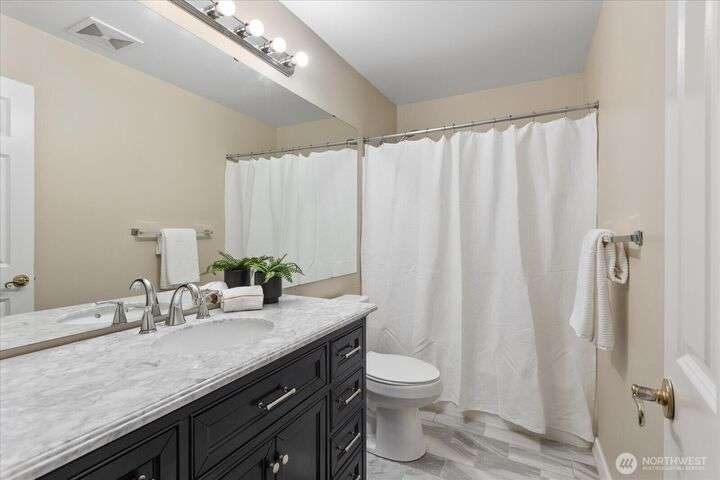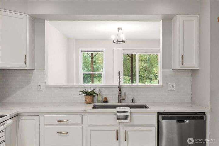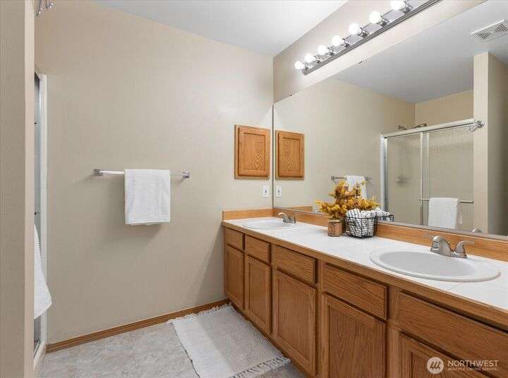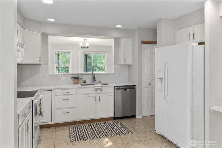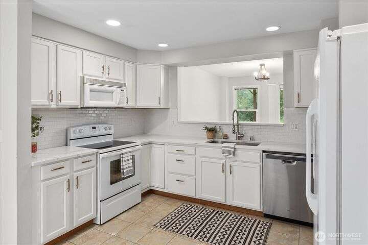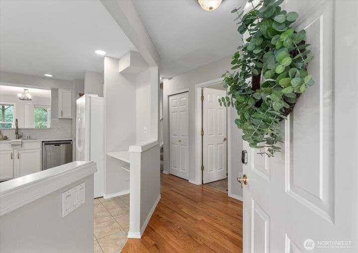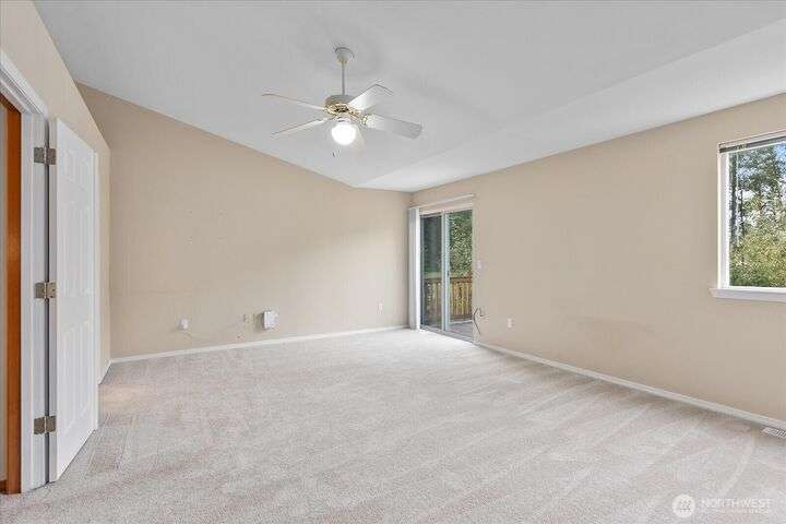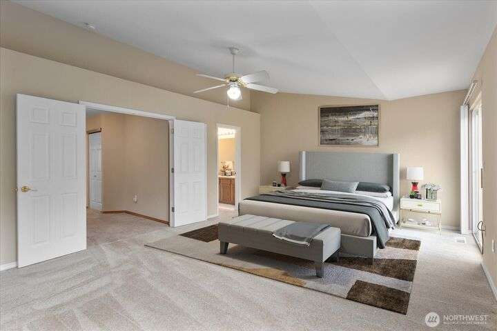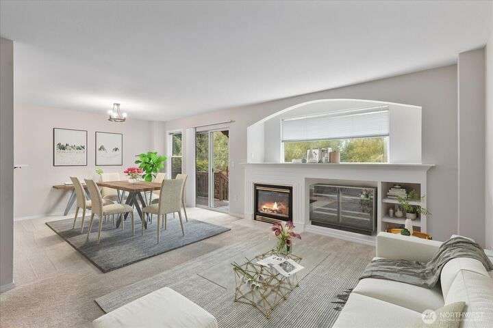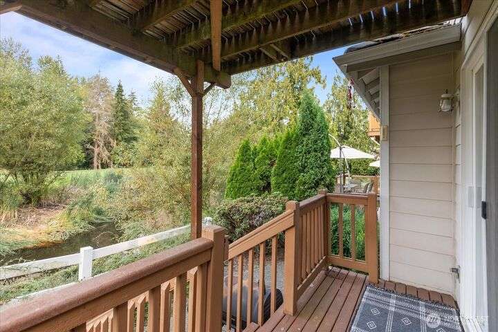 Move-in ready townhome on the 14th green of Gleneagle Golf Course! This well designed 1,750 sq ft, 3-bedroom, 2.5 bath home features an open main floor design with real hardwood floors, spacious eat-in kitchen with quartz countertops and living room with gas fireplace. Covered deck provides access to low maintenance yard with views of golf course and pond. Upstairs primary bedroom with ensuite, double closets, vaulted ceiling and private deck with views too! Two additional bedrooms, updated guest bathroom and conveniently located utility room complete the upstairs. Walkable neighborhood close to schools, shopping, restaurants and medical facilities. Great access to Highway 9 and I-5 for easy commuting! One-year home warranty included!