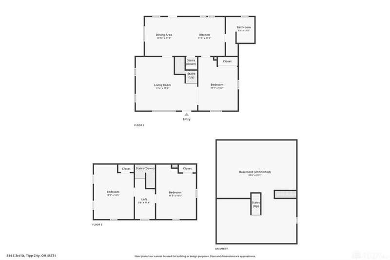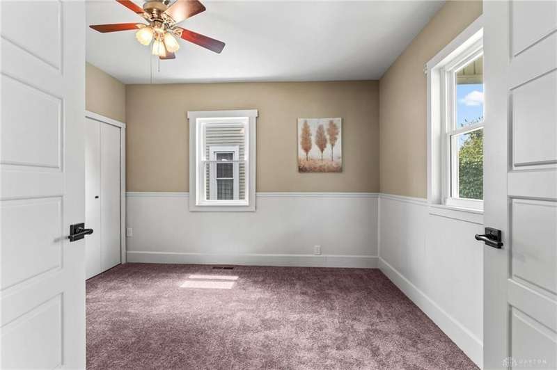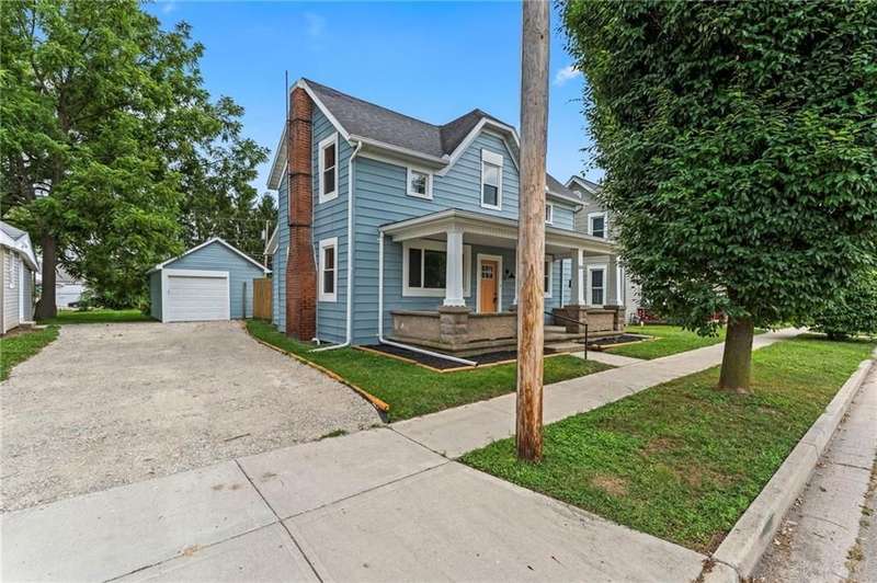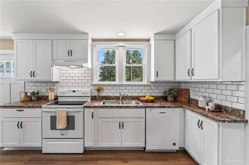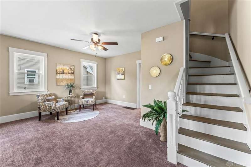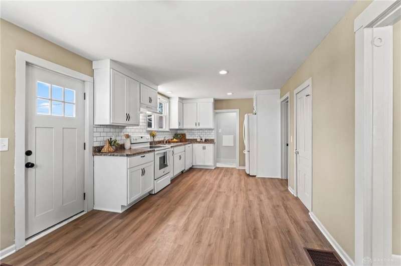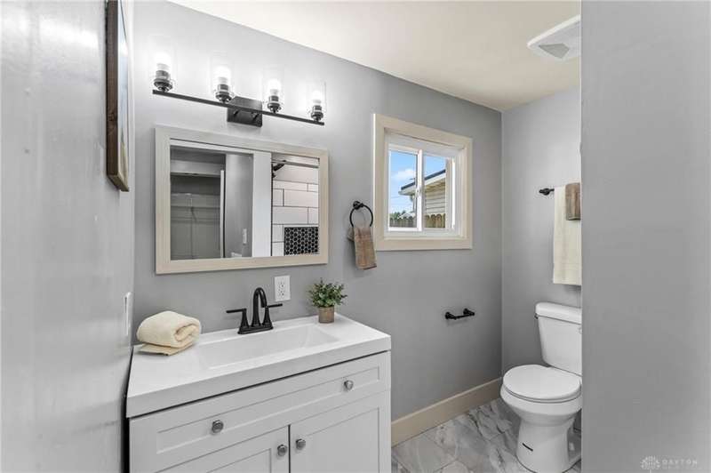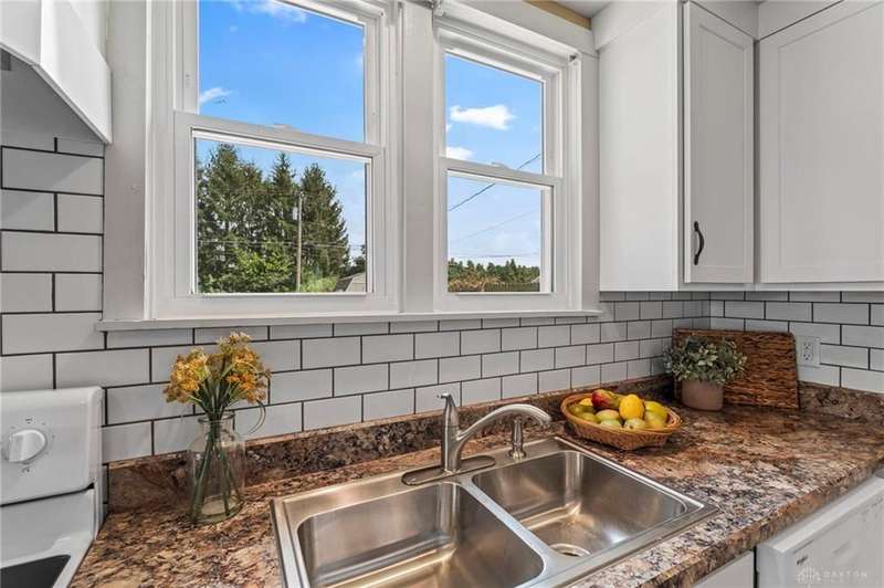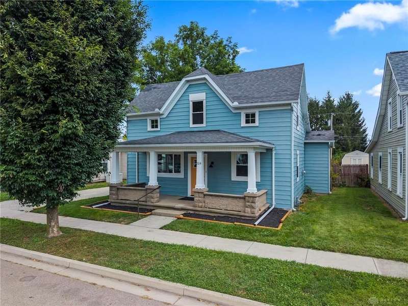 Welcome to this beautifully updated, move-in ready home just blocks from charming downtown Tipp City! A freshly graveled driveway and newly mulched landscaping set the stage as you arrive at this freshly painted home, featuring all-new siding, doors, and windows. Inside, abundant natural light pours through the large picture window in the living room, creating a warm and inviting space. Continue into the spacious eat-in kitchen, the true heart of the home, complete with new shaker-style cabinetry, countertops, appliances, a classic subway tile backsplash, and a generous dining area with walkout access to the brand-new back deck, perfect for indoor-outdoor entertaining. The main level offers convenient first-floor living with one bedroom and a fully renovated full bath, showcasing marble tile flooring, a new vanity and fixtures, and a sleek white subway tile shower accented with a black honeycomb tile niche. Upstairs, you'll find an open loft area, ideal for a home office, reading nook, or playroom, flanked by two generously sized bedrooms. The basement offers ample storage and laundry space, rounding out this home's flexible and functional layout. Step outside to enjoy your fenced backyard and new deck, the perfect setting for relaxing or hosting friends and family. Additional updates include: 95% efficiency furnace, Central AC, electric panel & receptacles, water heater, plumbing, flooring throughout, new kitchen & bathroom, and new garage door & opener. Located in the Tipp City School District with easy access to I-75, shopping, and dining, this turnkey home is a rare find!