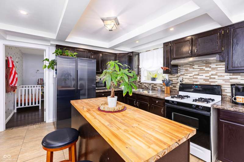 Completely updated and move-in ready! This charming 3-bedroom, 1-bath ranch offers peace of mind with a new roof, A/C, furnace, windows, electrical, water heater, refrigerator, and flooring, all within the last six years. You're greeted by a welcoming covered front porch that sets the tone for this inviting home. The stunning kitchen is the true highlight, featuring a large center island, modern finishes, and a designated dining area perfect for gatherings. The spacious family room offers plenty of natural light, creating a comfortable space to relax. Each of the three bedrooms are generously sized, providing flexibility for your lifestyle. The beautifully updated full bath features a tiled walk-in shower. Step outside to enjoy the backyard complete with a firepit, perfect for quiet evenings or entertaining friends. A detached two-car garage/shop provides ample room for parking, storage, or hobbies. With thoughtful updates and welcoming spaces, this home blends modern comfort with everyday functionality, a truly wonderful place to call home!