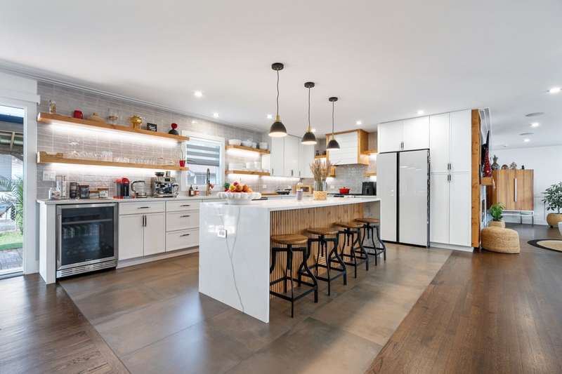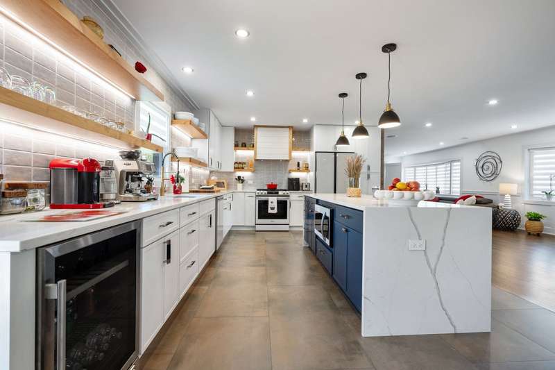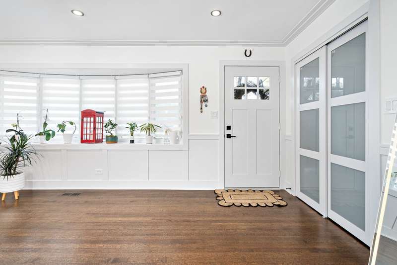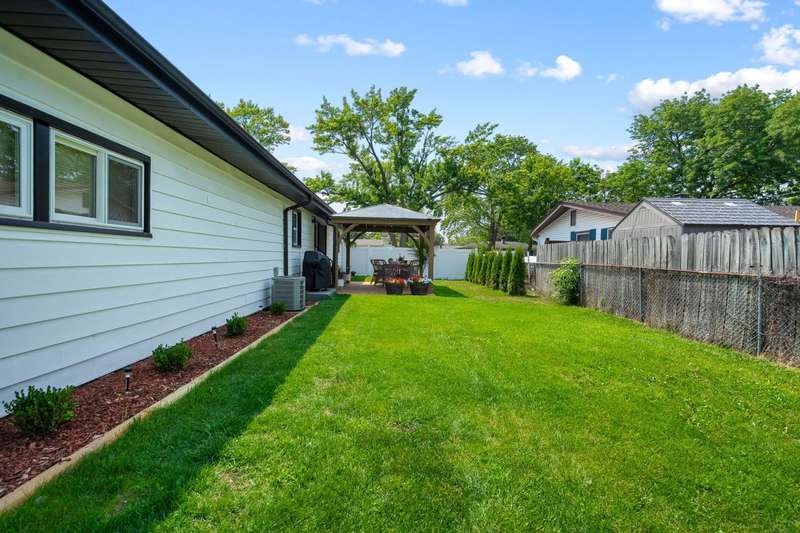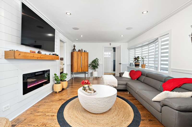 Welcome to this beautifully updated, turn-key ranch in the heart of Mount Prospect! Fully rehabbed in 2024, this sprawling 3 bedroom, 2 bath home was thoughtfully designed with custom details and mindful upgrades throughout. Step inside to find stunning custom woodwork and trim, new hardwood flooring, and an inviting open-concept layout. The showpiece kitchen boasts Samsung Bespoke appliances, modern cabinetry, and a seamless flow to the dining and living spaces. Both bathrooms have been completely redone with spa-like features, including heated flooring and a heated towel rack for everyday comfort. The home's living spaces are designed for both relaxation and entertainment - from the sleek electric fireplace to the built-in speakers and integrated media system that extends outdoors to the fenced backyard. Under the gazebo, enjoy outdoor speakers and plenty of room for gatherings. Practical upgrades include a high-efficiency LG washer/dryer stack combo and an EV charging hook-up in the garage. A new fence (2024) ensures privacy around the corner lot, offering plenty of outdoor living space. Families will appreciate the excellent River Trails Elementary and Middle Schools, with the award-winning John Hersey High School, consistently ranked among the best in the state. Located in the Brickman Manor subdivision, close to shopping, dining, and conveniences - this home has been redone from top to bottom. Simply move in and enjoy!