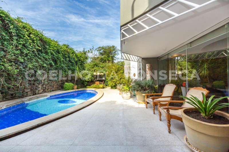 Casa no bairro Alto de Pinheiros com 555m² área construída, 5 dormitório(s), 5 suíte(s), 5 vaga(s), 10 banheiro(s), piscina, escritório, ar condicionado, dep. de empregados, pé direito duplo.
