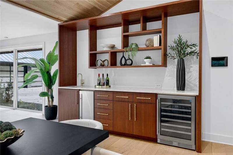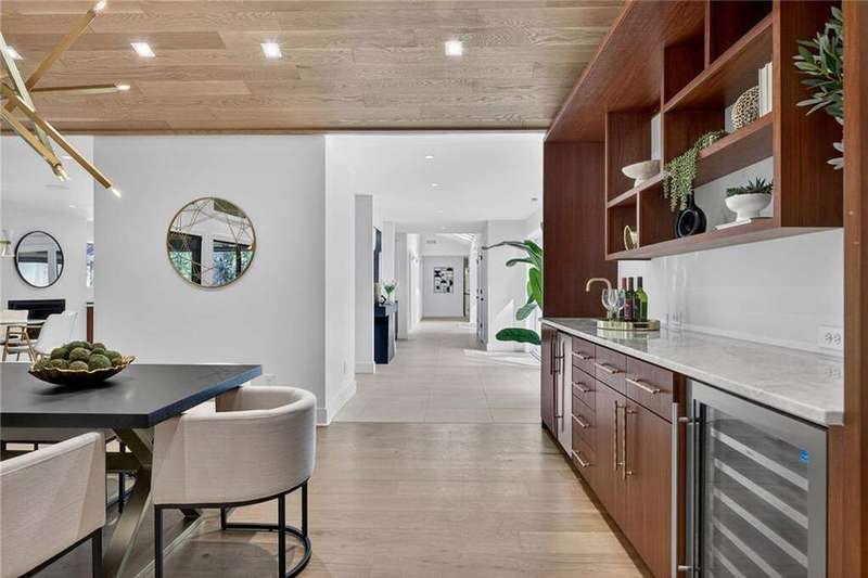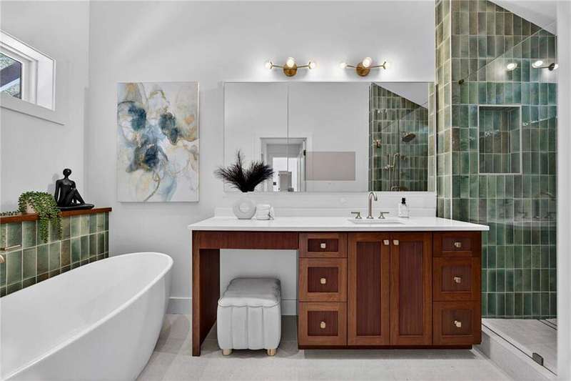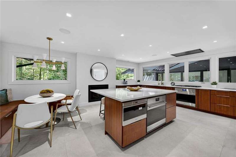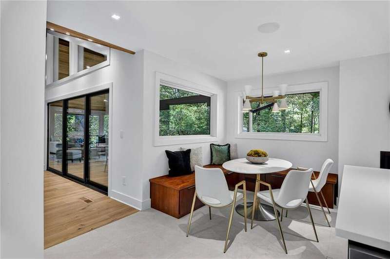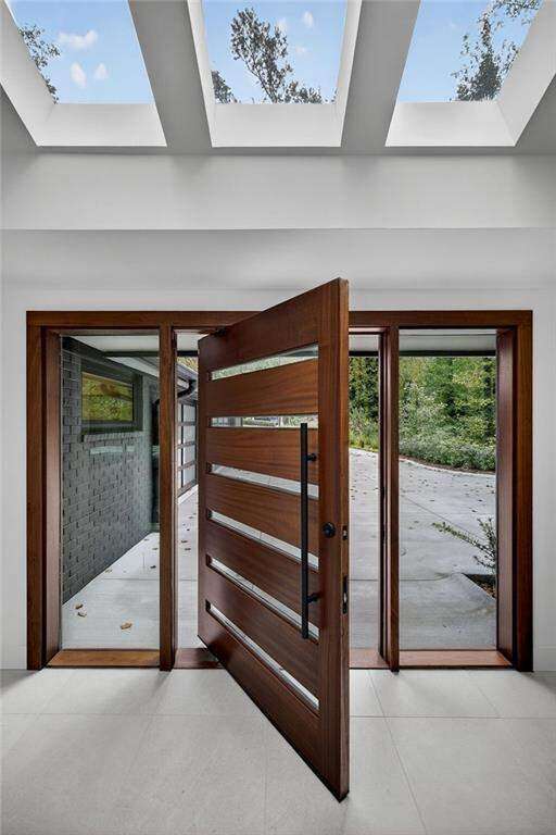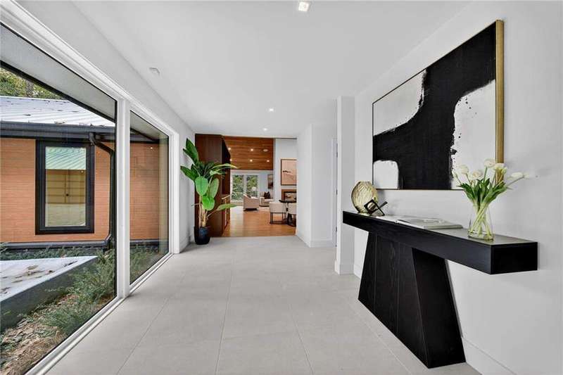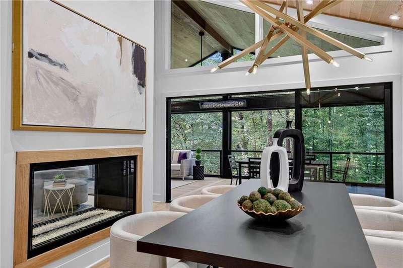 One-of-a-kind modern retreat on just under 2 acres acres with a walk out pool and waterfall views. Designed by Bryan Russell of Dencity, this mid-century-inspired home features a brand-new main level with 14' white oak ceilings, heated porcelain floors in bathrooms, and 30' glass doors opening to a screened deck overlooking the waterfall. Chef's kitchen with top appliances, large island, banquet seating, and walk-in pantry. Primary suite on main with dual spa baths, steam shower, and freestanding tub. Second main-level suite for guests. Resort-style saltwater pool and spa with retractable cover sit at the heart of the home. Whole-house smart automation for lighting, audio, security, and shades plus dual Kohler generators. Terrace level with the most fun custom tiki bar, theater, office, safe room, and walkout to stone patio. Professionally landscaped. A true architectural gem blending modern luxury with natural tranquility. Entertainer's dream home!
