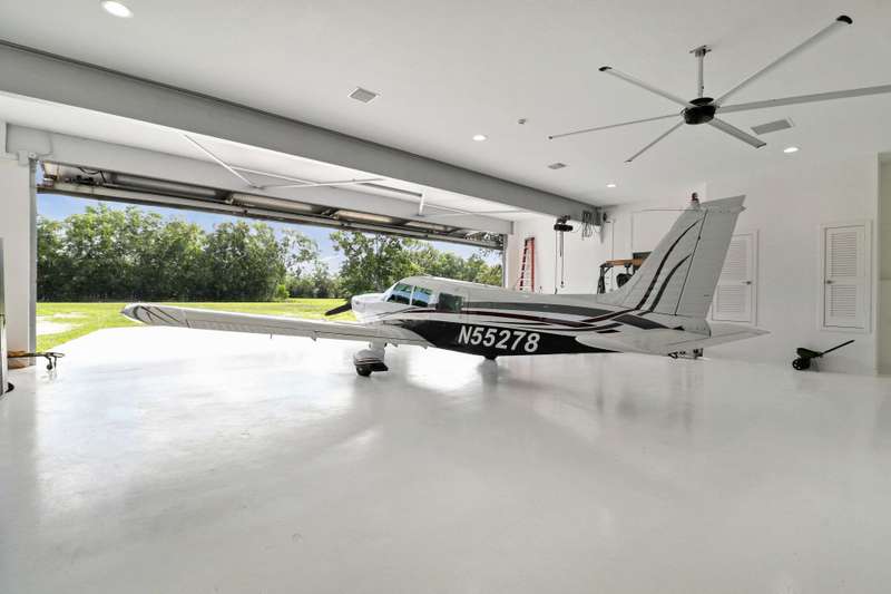 Tailwinds Aviation community. Jupiters exclusive fly-in community, offers 5-6 acre estate properties with taxiway easements, a 2,700 paved runway + 300 overrun, Main home has 2,982 sq ft. Decorator ready with high ceilings, floor-to-ceiling fireplace, open-concept great room, 4BR/3.5BA, dining room, breakfast nook, and cabana bath. Renovations include new impact windows, wiring, drywall; pool with new finishes/equipment. The Hangar is 2,989 sq ft fully Air conditioned. New kitchen, impact windows, living area, open entertaining bar with cooler, 1 or 2 Bedroom/1.5BA. A rare aviation lifestyle in a gated community with several private golf courses and equestrian area. More photos coming soon.