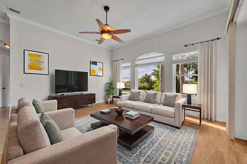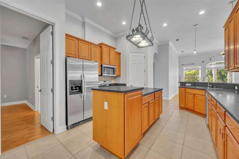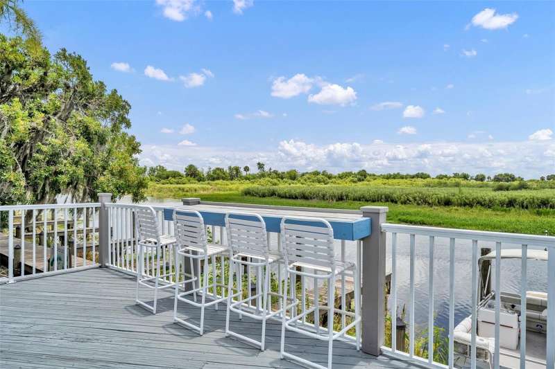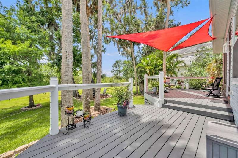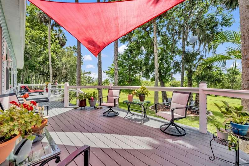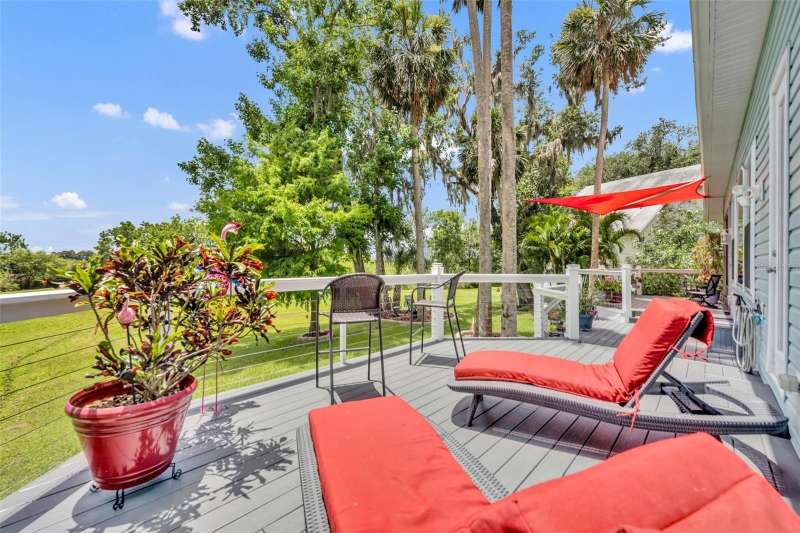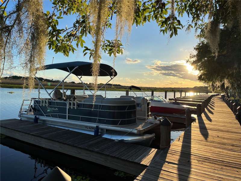 BOAT SLIP with access to the St. Johns River, one of Florida’s most scenic waterways, is perfect for boating, fishing, and wildlife watching, offering a true Old Florida lifestyle. Riverfront living at its finest in the gated Marine Village of River Oaks on the St. Johns River! This beautifully maintained, sought after SINGLE STORY, 4-bedroom, 3-bath home combines classic Southern charm with modern updates and includes a BOAT SLIP! Step onto the welcoming front porch and into a light-filled, open floor plan featuring updated stainless steel appliances, a wet bar, spacious living areas, and a smart split-bedroom layout for privacy. The primary suite offers direct access to the screened-in porch, two walk-in closets, and a private en-suite bath with dual sinks, a spacious walk-in shower, garden tub, and a separate water closet—your own private retreat. Two of the secondary bedrooms share a convenient Jack-and-Jill bathroom, while the fourth bedroom and full guest bath provide flexible space for visitors or a home office. Enjoy year-round outdoor living on the screened-in lanai with an exhaust fan for grilling, or relax on the rebuilt Trex deck with modern cable railings, all overlooking a beautifully landscaped yard and peaceful views. This home also includes a boat slip at the private community dock, making it a true boater’s paradise. A new roof and HVAC system (2024) provide peace of mind for years to come. River Oaks offers residents gated security, a community pool and spa, clubhouse, a playground, and lawn maintenance. Just minutes from Gemini Springs Park, walking and biking trails, SunRail, and I-4. Don’t miss your chance to own a truly turn-key riverfront retreat in one of DeBary’s most desirable neighborhoods!