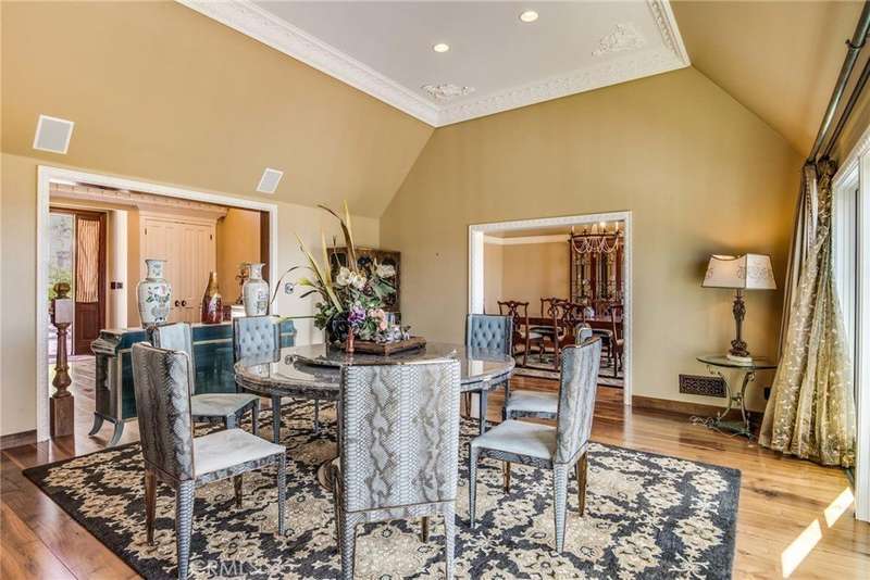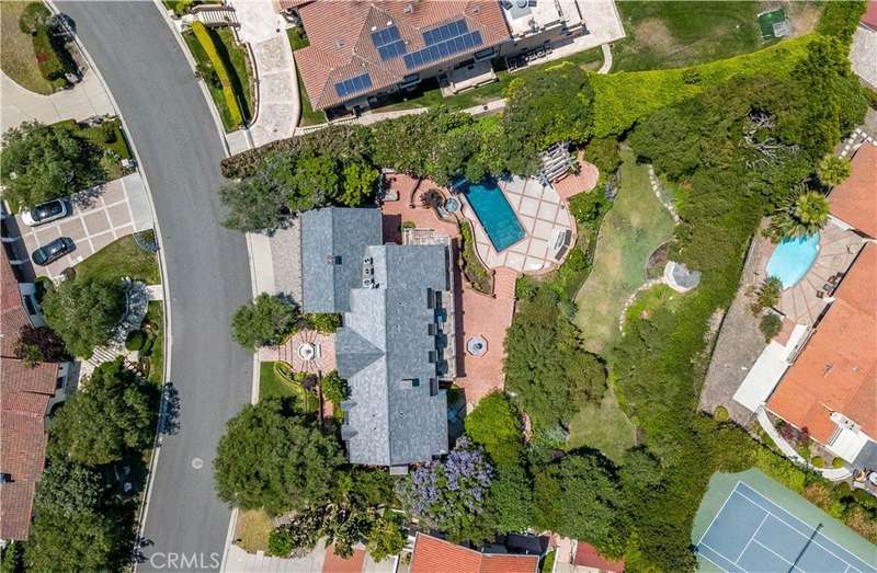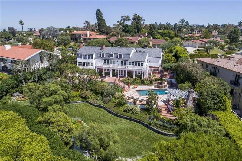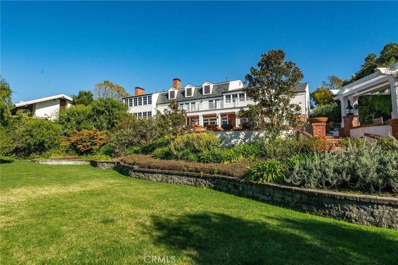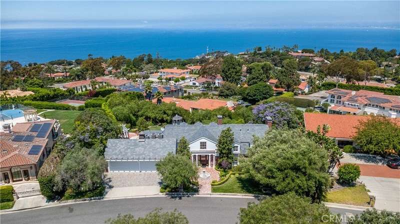 Located in the heart of Montemalaga—one of the most sought-after neighborhoods for luxury estates in Palos Verdes Estates—this stunning Colonial-style residence showcases elegance, sophistication, and absolute privacy on one of the most unique lots in the area. Extensively remodeled with high-end finishes (most recently in 2013), this custom home offers expansive ocean and coastline views, an inviting courtyard entry with a tranquil water fountain, and a grand foyer illuminated by a Bohemian Crystal Chandelier. Throughout the main level, you’ll find 8” wide-plank walnut hardwood floors, and exquisite Enkeboll Design staircase banisters and molding that elevate the craftsmanship and design. The formal living and dining rooms overlook beautifully landscaped grounds and panoramic ocean vistas. The chef’s dream kitchen features a Wolf professional range and top-of-the-line stainless steel appliances—ideal for entertaining in style. Seller Financing or Lease Option Considered. The private master suite is a serene retreat, complete with a cozy sitting area, fireplace, and breathtaking views of the gardens and Pacific Ocean. Two spacious family rooms provide flexible living areas, perfect for gatherings and everyday comfort. The lush backyard is an oasis of tranquility, featuring an expansive brick patio, wood-burning fireplace under a charming open-beam portico, a copper-roofed gazebo, peaceful walking paths, fountains, and meticulously manicured gardens. The resort-style pool and spa, along with built-in BBQ area (gas and wood-burning), make this estate ideal for entertaining year-round. Offering exceptional design, absolute privacy, and estate-like grounds, this residence embodies the best of Palos Verdes Estates luxury living.