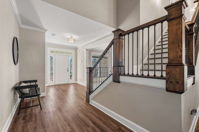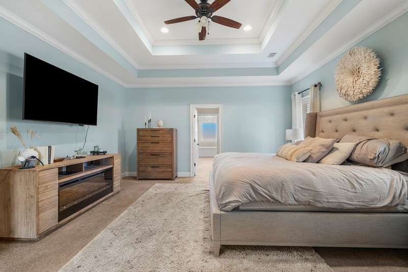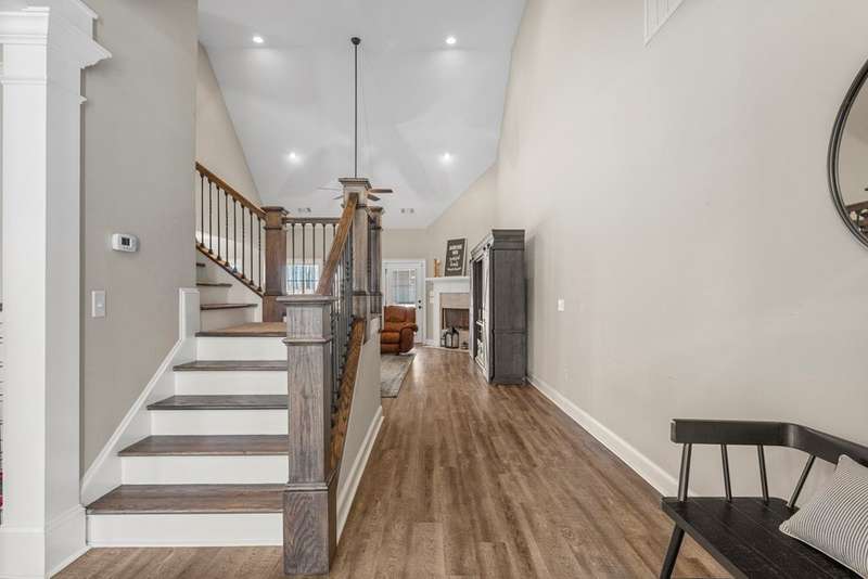 Meticulously maintained all-brick home in the desirable Steele Creek Subdivision. Offering elegance and modern comfort, this home features a grand 2-story foyer and an open-concept layout perfect for both everyday living and entertaining. The spacious master suite on the main level boasts a luxurious bath with a walk-in shower, double vanity, soaking tub, and a separate office space for added convenience. The kitchen is a chef's dream, complete with a breakfast area, large island, double ovens, and a walk-in pantry for ample storage. Designed with privacy in mind, the split floorplan offers another bedroom on the main floor. Upstairs, you'll find three additional bedrooms, including a Jack and Jill bath, and another bedroom suite, ensuring plenty of space for family and guests. Extra Storage space with walk in attic space. Step outside and enjoy the tranquility of the covered patio overlooking your expansive 2-acre lot, perfect for outdoor relaxation or entertaining. This home combines spacious living with modern features and a prime location, making it an ideal choice for those seeking both luxury and convenience.