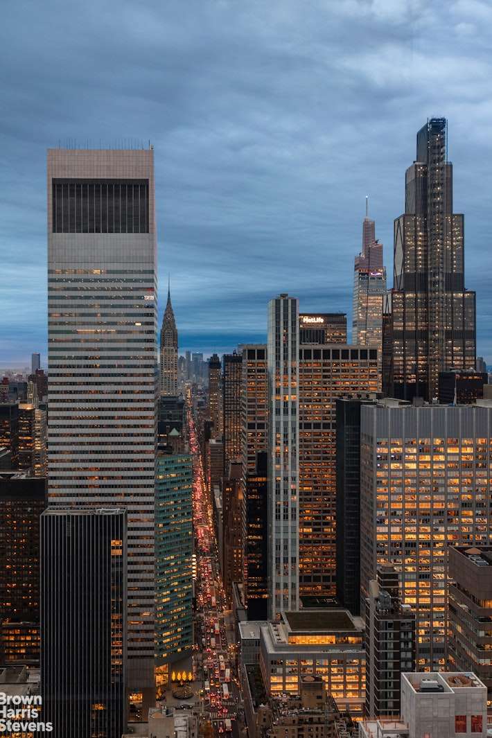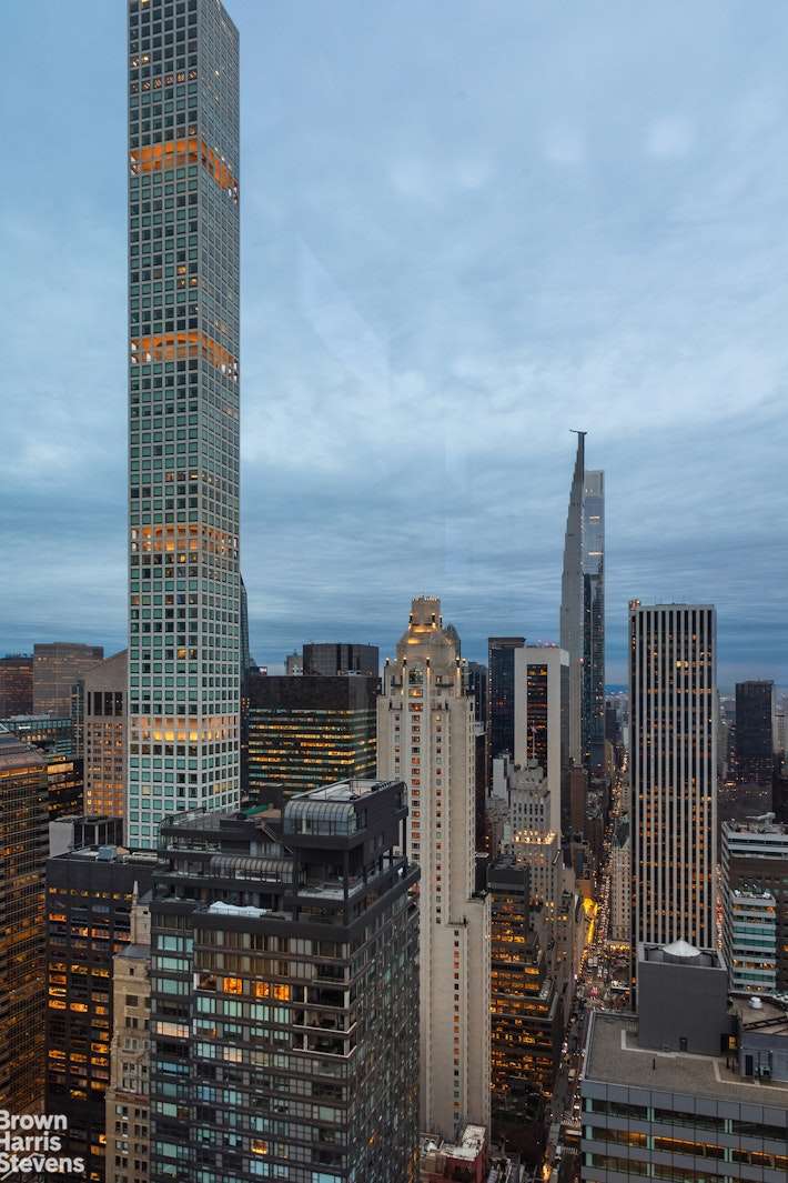 Perched on the 43rd floor, this grand three-bedroom, three-and-a-half-bathroom residence spans nearly 2,500 square feet. Flooded with energizing light through floor-to-ceiling windows, it offers breathtaking sunset views of both the city and the park. Enter through a graceful foyer that leads into a nearly 30-foot gallery, ideal for showcasing artwork and sculptures. The expansive living and dining area features loft-like ceilings and stunning scenery of Central Park, iconic New York architecture, and open skies.