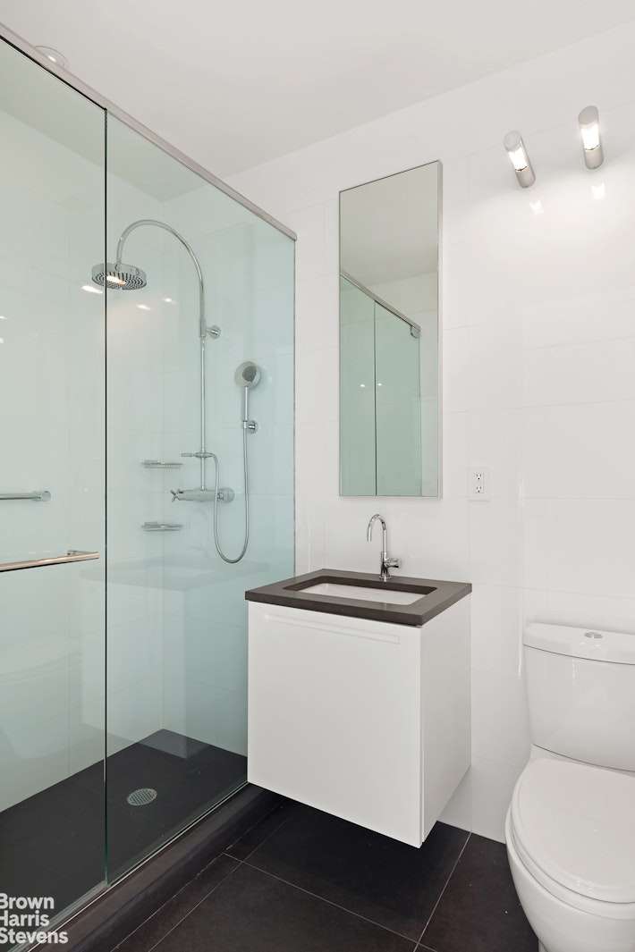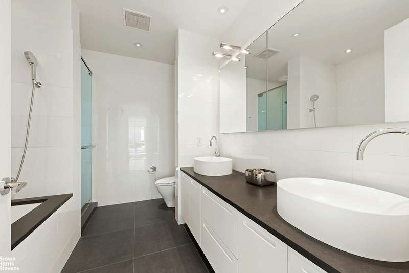 This exceptional home is finished with wood floors which complement the nearly 11-foot ceilings that create an expansive feel. Enjoy the luxury of fully customized closets throughout the apartment, providing ample storage tailored to your needs. Experience effortless comfort with motorized blackout window shades and centralized heating and A/C, ensuring a perfect atmosphere year-round.