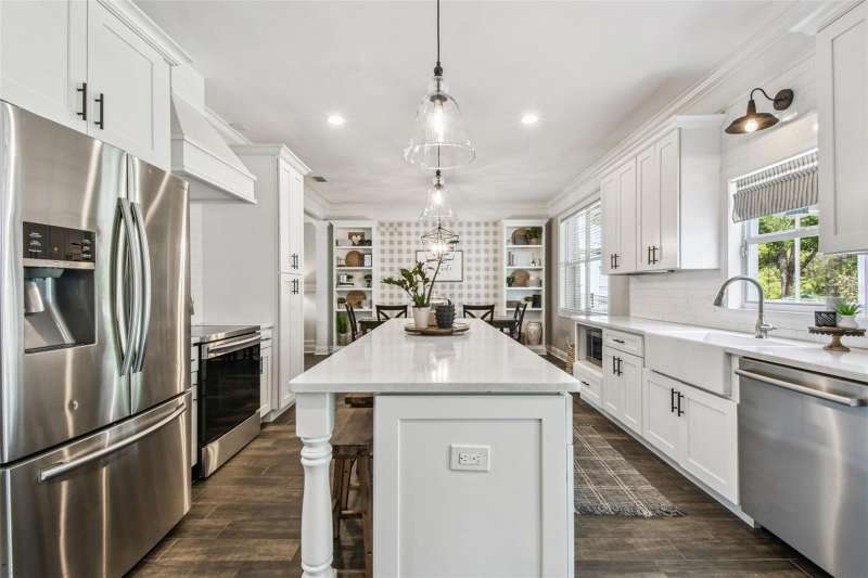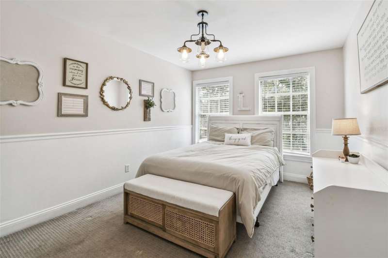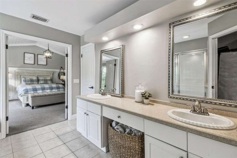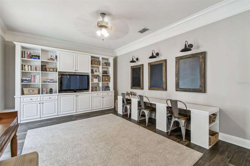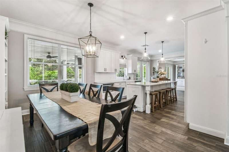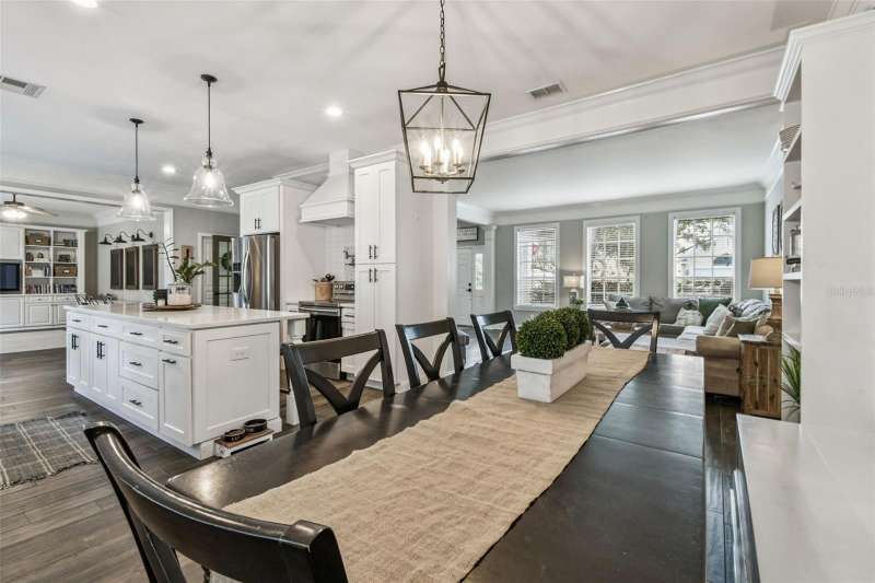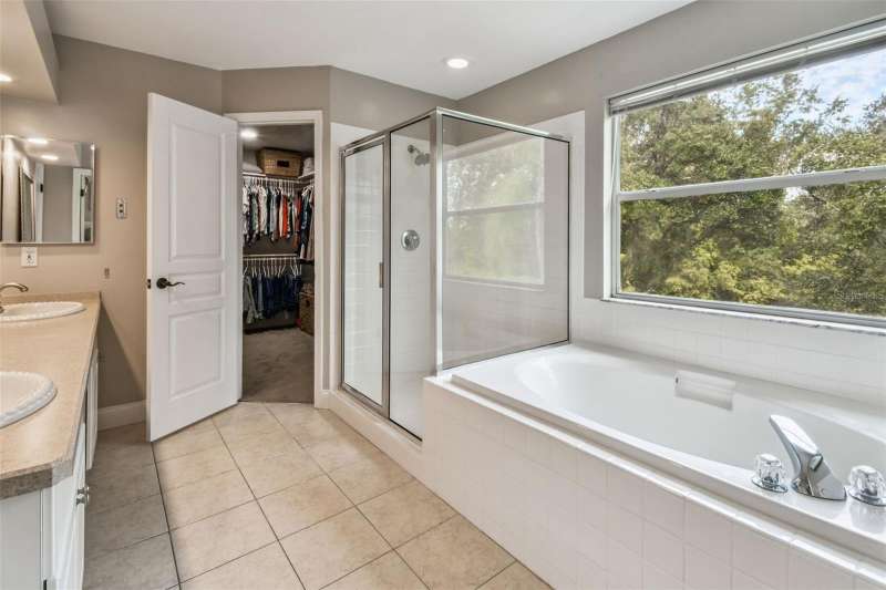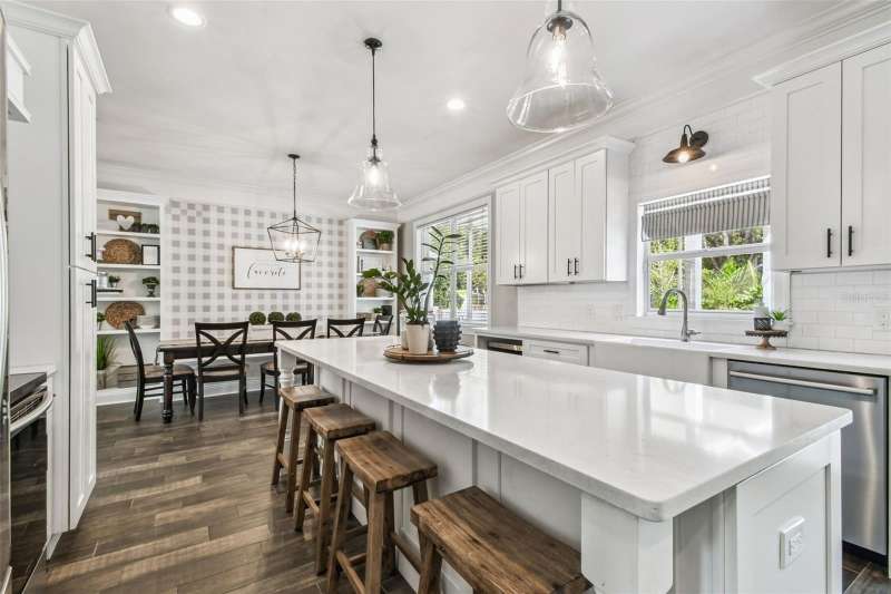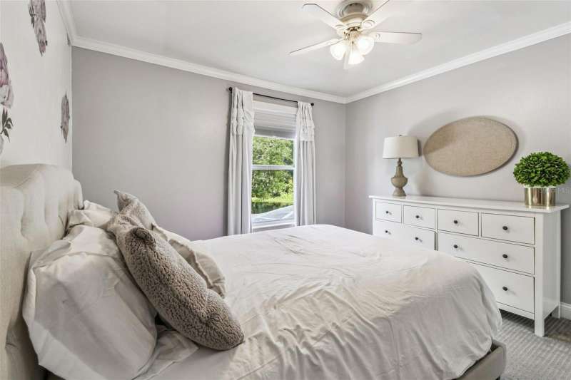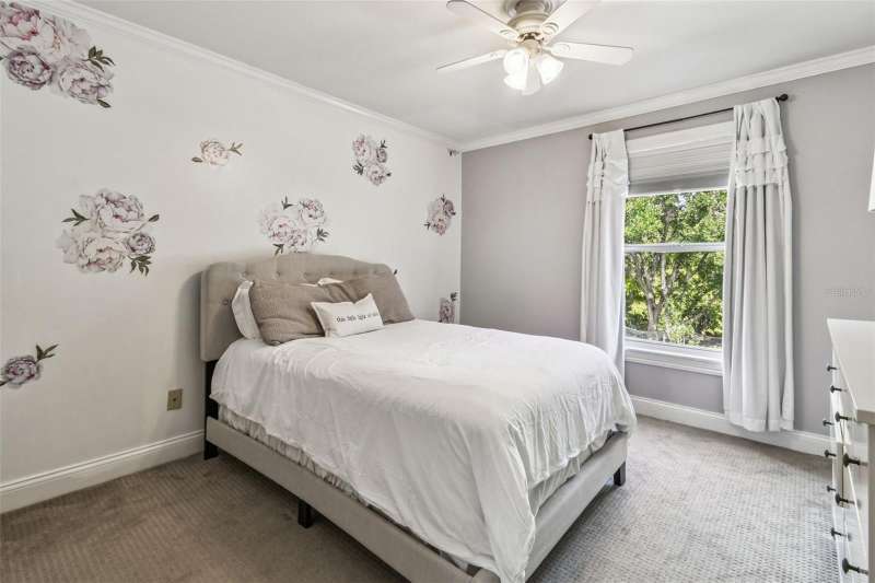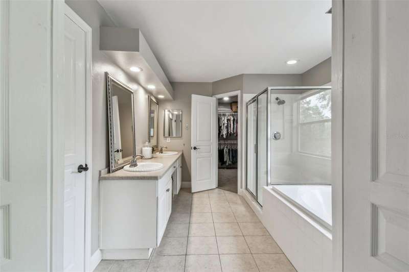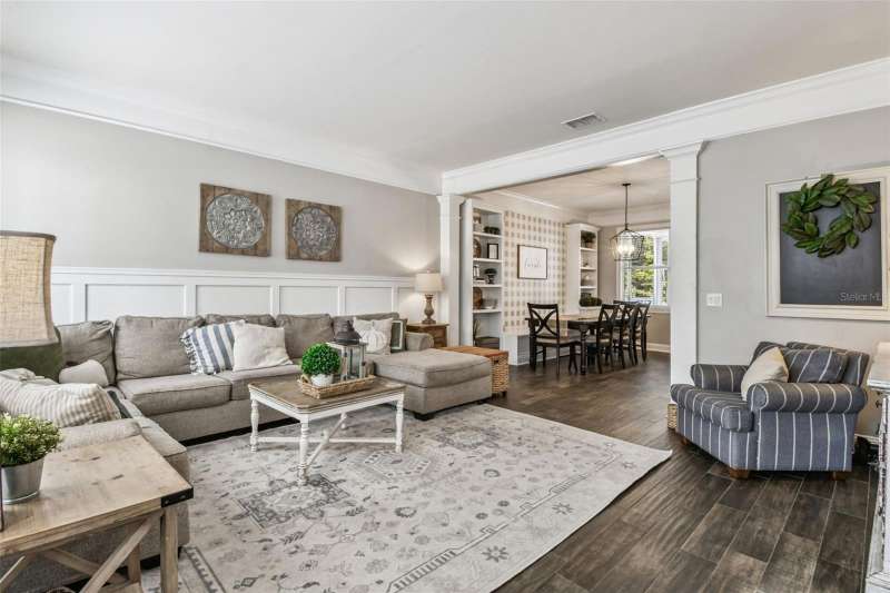 Under contract-accepting backup offers. Beautiful four bedroom, two and a half bath pool home on a stunning pond and wooded homesite in popular Wellington in Tampa Palms. Sophistication and luxury throughout. Over 2300 square feet of living space. NEW AC in 2025, freshly painted inside and out. Pavered entry leads to a large living room. Plank-style tile throughout the first floor starting in the foyer and extending to the living room, dining room, family room, kitchen and half bathroom. The renovated kitchen includes granite countertops, shaker-style white cabinetry with crown molding, a ceramic farmer’s sink with one-touch faucet, subway tile backsplash, vented hood system, pot filler, smooth top range, stainless steel French door refrigerator, microwave, and Bosch dishwasher, as well as a large center island that’s perfect for casual dining. The primary bedroom suite includes an 18x16 bedroom, a large walk-in closet, and a bathroom with double vanity, garden tub, walk-in shower, private water closet, and linen closet. Other upgrades include crown molding, 5 ¼ inch baseboards, wainscoting, custom built-ins in the family room and the dining room, a drop zone as you enter from the garage, two additional storage closets (Can’t have enough storage.), fenced yard and more. Roof is only 9 years old. Sit out on the pavered lanai overlooking the sparkling pool and enjoy Florida living at it finest. Community amenities include Hampton Park at the front of the community with a playground, pavilion, basketball courts, tennis courts, and racquetball courts. The community pool, gym, courts for various sports and clubhouse are located at Compton Park. The home is within walking distance to Chiles Elementary School and is near Liberty Middle School and Freedom High School. There are various shopping, dining, and recreational options in Tampa Palms, and the location provides access to I-75, I-275, the University of South Florida, James A Haley VA Hospital, Moffitt Cancer Center, Busch Gardens, Premium Outlet Mall, Shoppes at Wiregrass, downtown Tampa, and Tampa International Airport. Pride of ownership evident. Hurry!