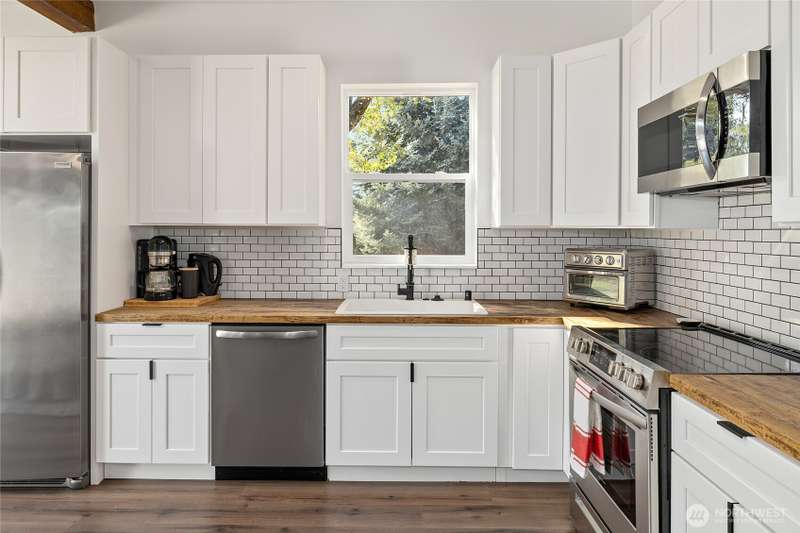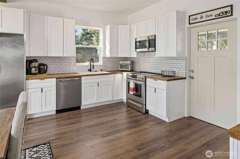 Completely remodeled 4 bed, 2 bath home on a .84 acre parcel. Enjoy peaceful country living with modern updates throughout, including kitchen, baths, flooring, and more. Open main level living space with large picture windows and a cozy free standing wood stove. Upstairs features a primary suite with walk in closet, full bathroom and vaulted ceilings. Outside there are mature trees and a large outbuilding for additional storage needs. Bring your idea to life and create your own outdoor oasis. New 4 bedroom septic recently approved and installed. Conveniently located close to local amenities and just minutes from I-90 for an easy commute. A perfect blend of privacy and accessibility!
