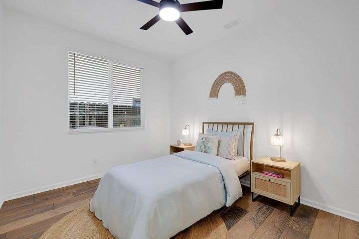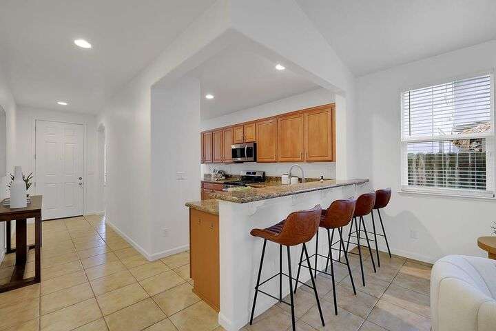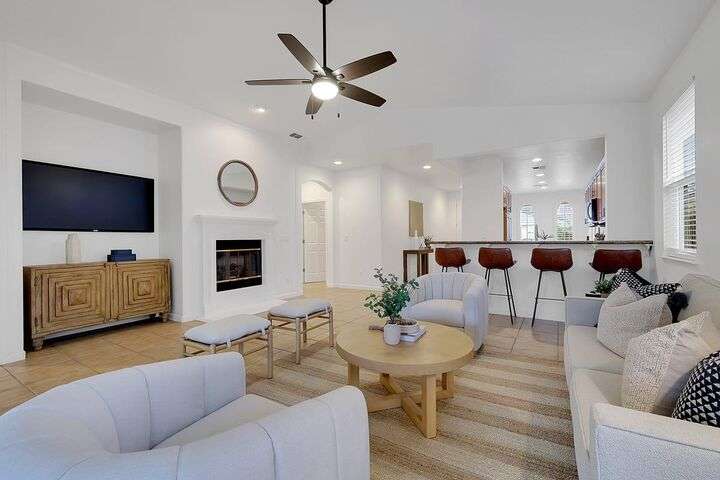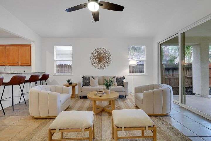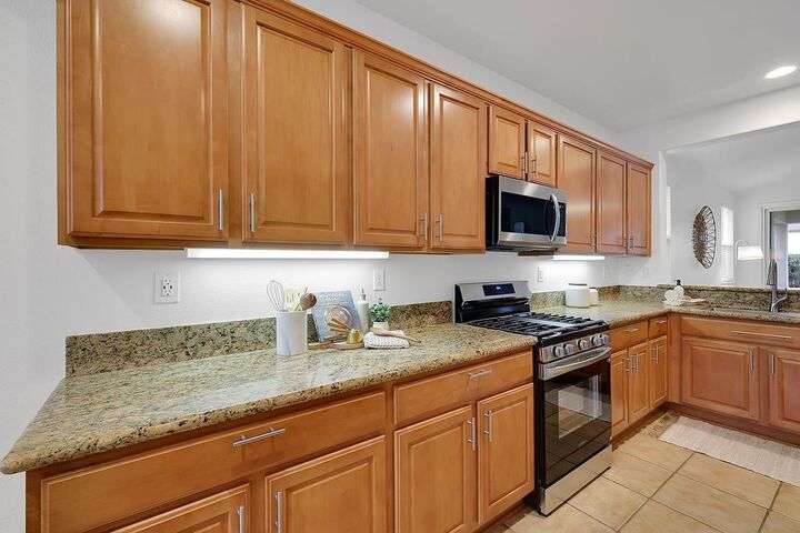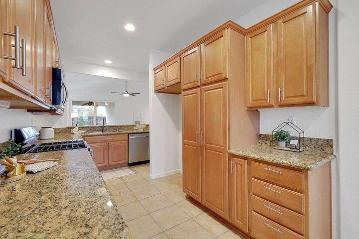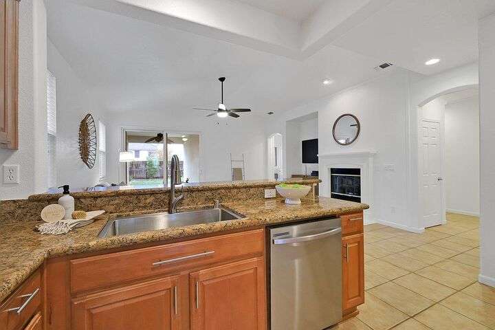 Beautiful 3 bedroom, 2 bath home located in the desirable Twelve Bridges community with no HOA, situated on a quiet cul-de-sac. This property features tile flooring in the main living areas, laminate flooring in the bedrooms, recessed lighting, and new ceiling fans. The inviting family room includes a cozy fireplace, and the kitchen offers granite countertops along with a new dishwasher and stove. Enjoy a freshly painted interior and peace of mind with a newer HVAC system installed in 2022. The home also features a solar system with battery backup for added energy efficiency and reliability. The spacious primary suite includes a walk-in closet, dual sinks, a large shower. Step outside to a private backyard with a concrete patio, new sod, and plenty of space for outdoor entertaining. Conveniently located within walking distance to Twelve Bridges Elementary and Coyote Pond Park, and served by highly rated schools.