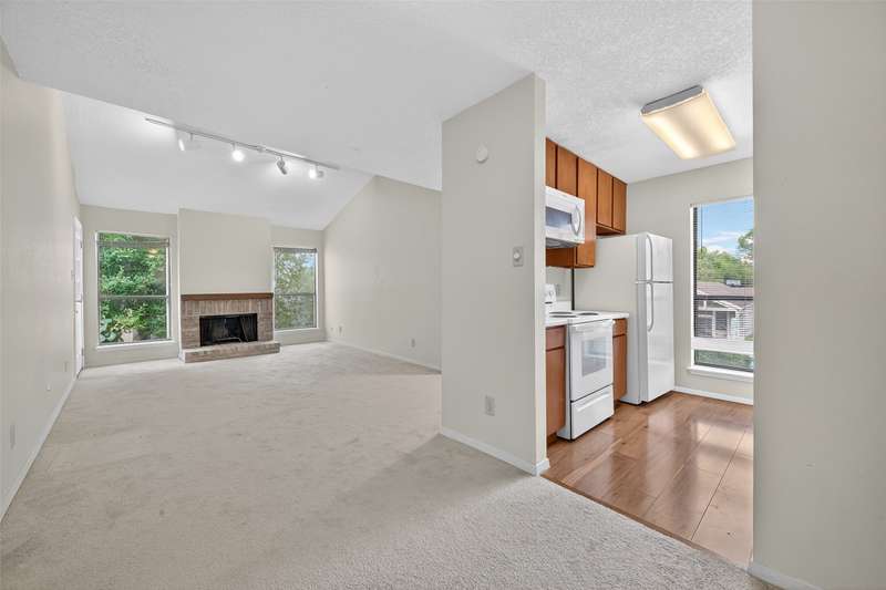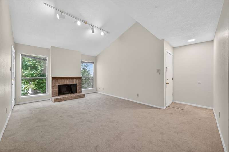 Prime location minutes from NRG stadium and close to the Medical Center. Gated community! This second floor corner unit located in Briar Green overlooking the community pool and tennis court. Living room with high cathedral ceilings, stylish tracking lighting, charming fireplace and large windows letting in ample natural light and private balcony. Functional kitchen with ample space with pantry with easy access to the dining room. Spacious primary retreat with walk-in closet. Primary bath features tub/shower combination. Generous size secondary bedroom. Second full bathroom services guest bedroom or guests! Utility room with stack washer/dryer is in home! Community features pool, tennis courts and nearby light rail access!