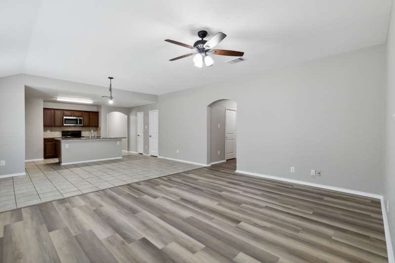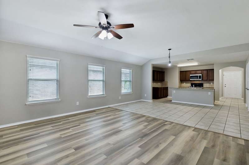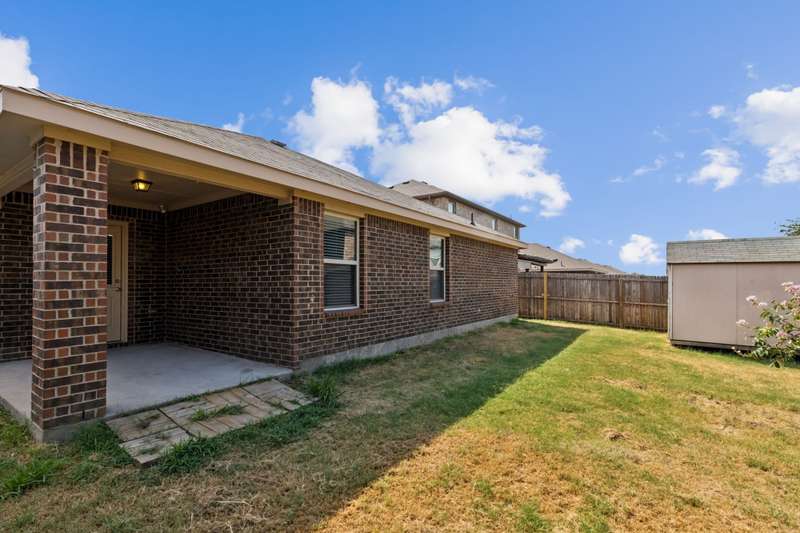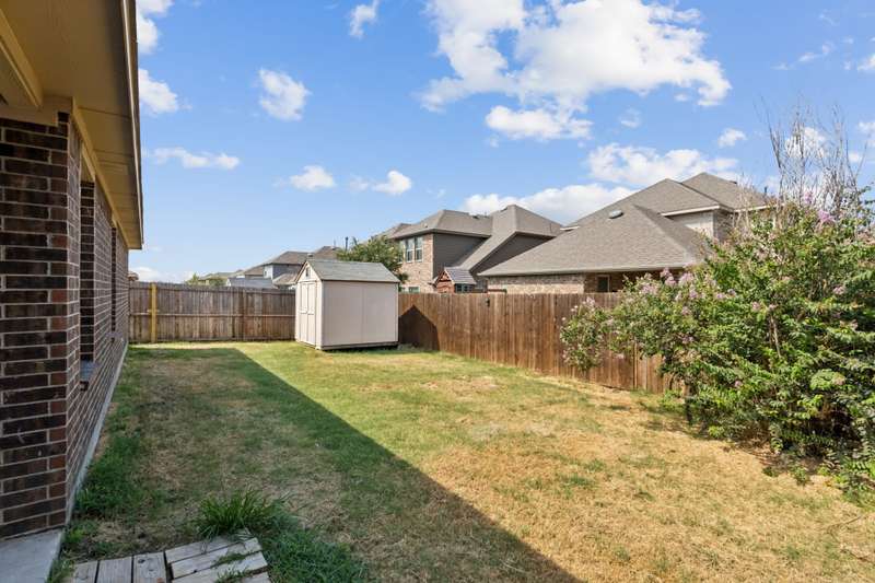 BUYER INCENTIVE: $6,000 towards buyer closing costs! Welcome to this charming 4-bedroom, single-story home in the desirable Travis Ranch community! Freshly updated with new luxury vinyl plank flooring and a full interior paint refresh, this home is stylish, low-maintenance, and ready for you to make it your own. The open-concept layout is perfect for everyday living and entertaining, with a spacious living area, dining space, and kitchen that flow seamlessly together. The kitchen features granite countertops, ample cabinet space, a pantry, and an island with seatingideal for casual meals or entertaining guests. The private primary suite is tucked away at the back of the home and offers a generous vanity area, walk-in shower, linen storage, and a large walk-in closet. Additional highlights include a dedicated laundry room with shelving and space for a full-size washer and dryer, which also functions as a convenient mudroom entry from the 2-car garage. The garage features coated flooring and built-in storage for added functionality. Step outside to a fully fenced backyard with a covered patioperfect for outdoor relaxationand a storage shed for your lawn tools or seasonal dcor. Enjoy all that Travis Ranch has to offer, including an on-site elementary school, resort-style pool, splash pad, playground, walking trails, basketball court, and dog park. Dont miss your chance to own this beautifully updated home in a vibrant, amenity-rich community!