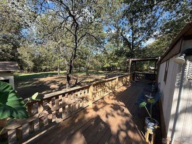 Spacious 2 bedroom, 2 bathroom manufactured home situated on 1.28 acres with mature oak trees providing shade and character. The home measures 16'x80', providing approximately 1200sq ft. of living space and offers a functional layout with a comfortable living room area. A generous 38'x8' front porch/deck and a 24'x8' deck that wraps from the front down the side and provides an inviting outdoor living space, while a 31'x28' detached shop offers ample room for storage, parking, and projects. This property combines country living with convenient access to nearby amenities. Agents see remarks