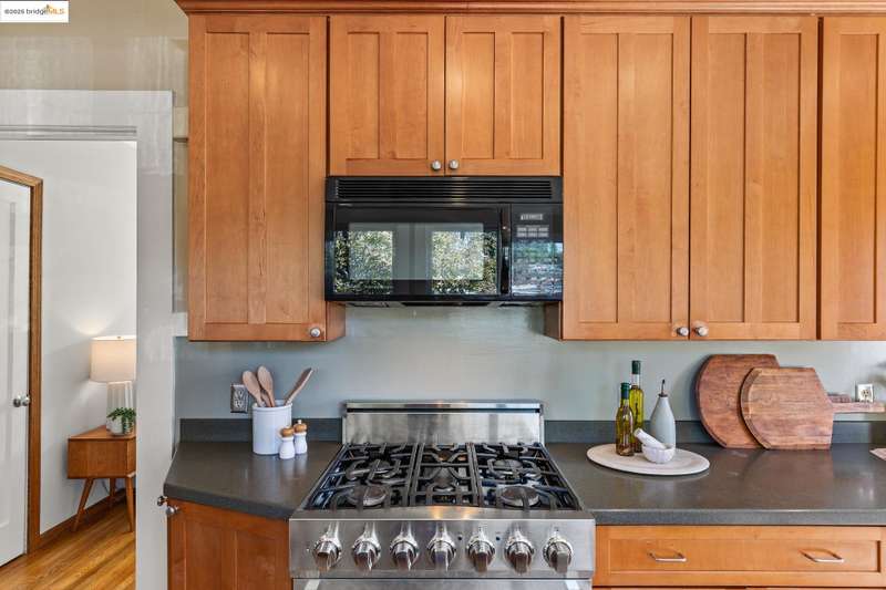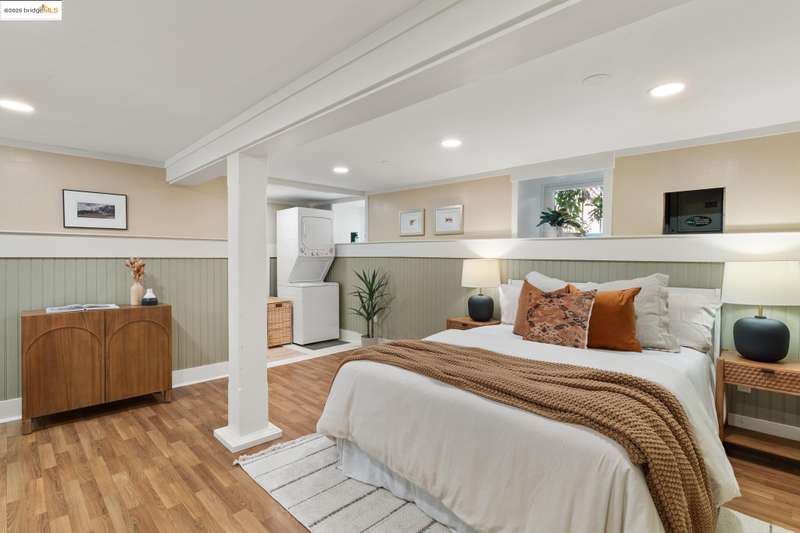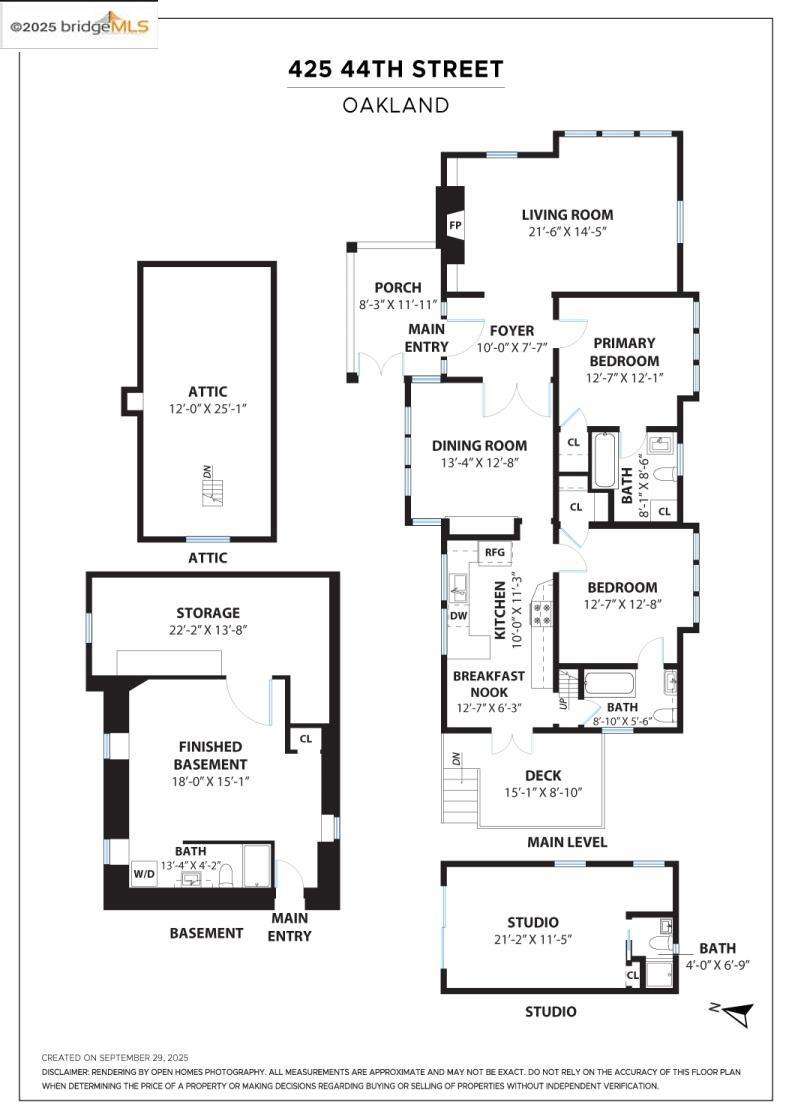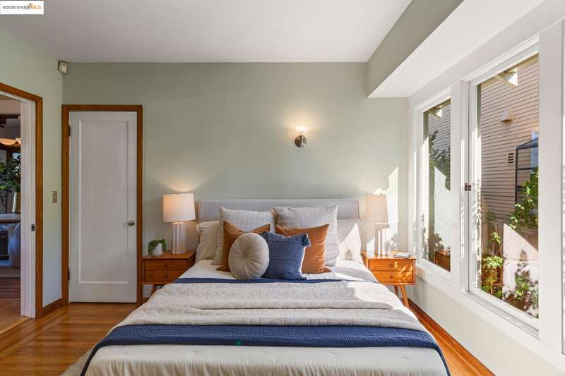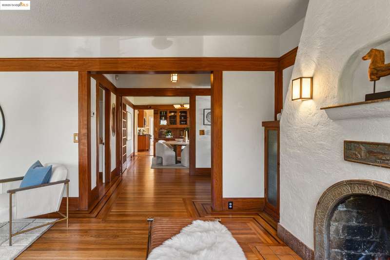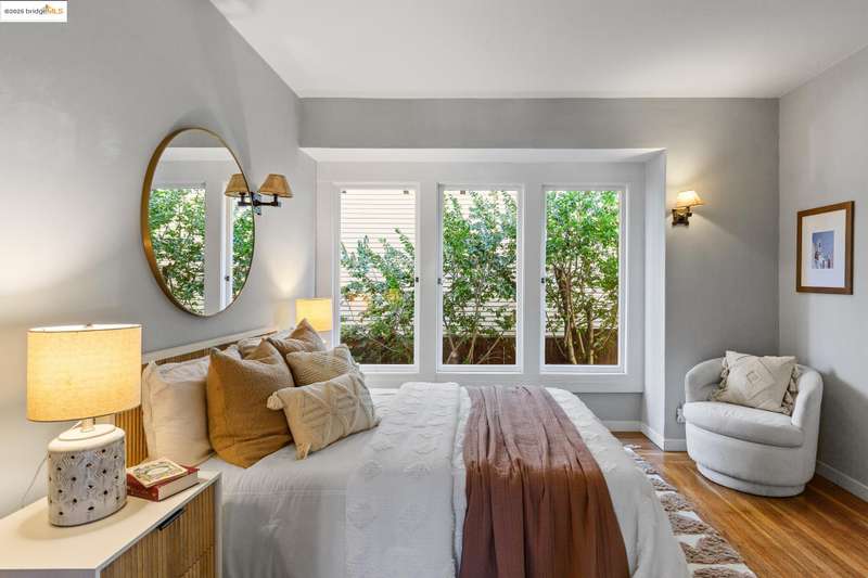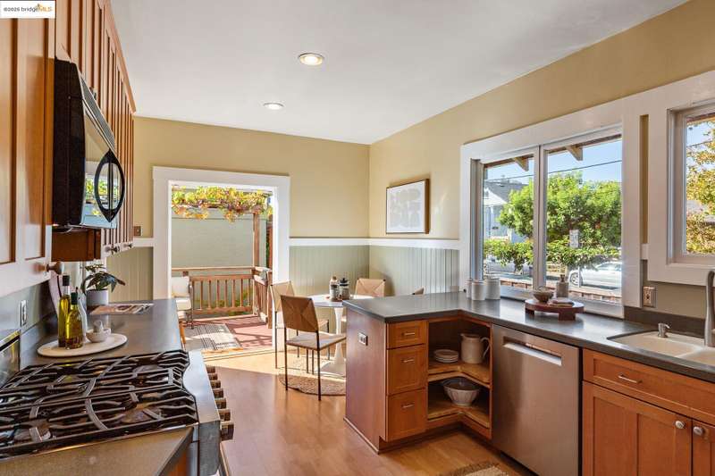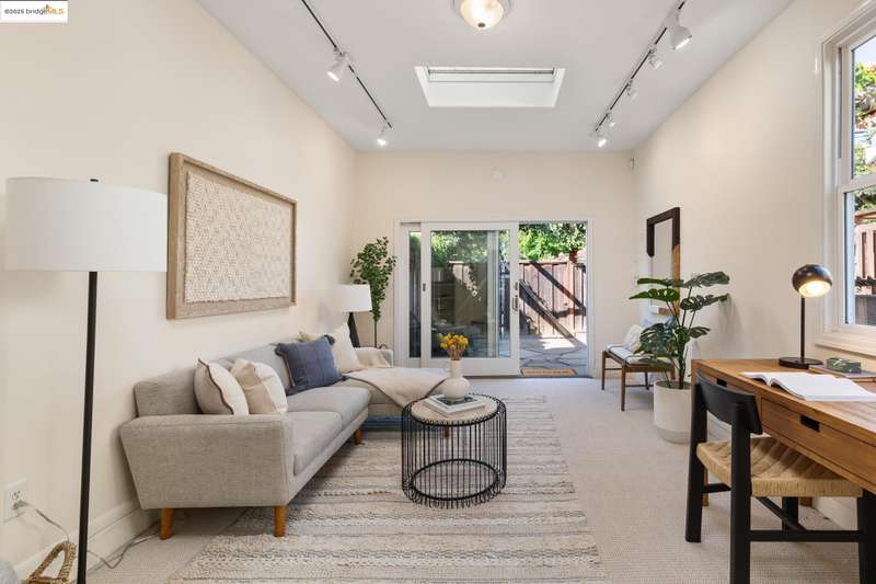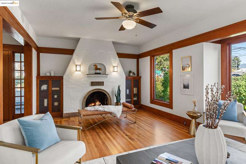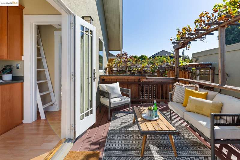 Gorgeous hidden Craftsman oasis in the heart of Temescal just moments from neighborhood favorites. Greenery & patios surround the home—perfect for morning coffee, gardening and entertaining. An enclosed foyer welcomes you into a light-filled main level with big windows and warm wood detailing throughout. Spacious living spaces flow into each other and lead into the kitchen with high-end Viking appliances, where two sets of glass doors connect seamlessly to the deck and beyond. Two spacious bedrooms and two full bathrooms are complemented by a finished attic that can be used as a play- or reading room. With its own external entrance, the non-conforming basement offers flexible space for guests or home office and has its own full bath. Spacious detached studio with full bath expands for unlimited options. With planter beds and a generous parking pad, this home balances tranquility with convenience in a vibrant neighborhood.