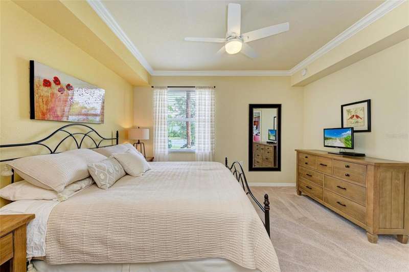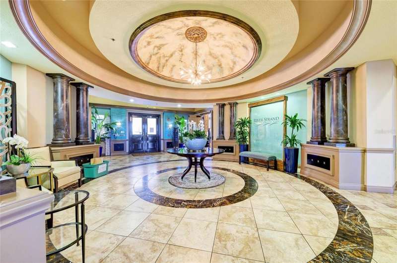PERFECT LOCATION, GOLF DEEDED, NEWER A/C, TURNKEY AND FURNISHED.... This property has it ALL. Experience refined Florida living with this highly sought-after Colonnade Model-the largest condo design in River Strand Golf & Country Club. Perfectly situated on the second floor, this end-unit residence showcases sweeping panoramic views of the golf course and lake, creating a picture-perfect backdrop for everyday living. Offered turnkey, fully furnished, and move-in ready, the home features a spacious split-bedroom floor plan with 2 bedrooms, 2 bathrooms, and a versatile flex room with a sleeper sofa, ideal as a third bedroom, office, or retreat. The gourmet kitchen boasts BEAUTIFUL cabinetry, granite countertops , stainless steel appliances, and a breakfast bar that flows seamlessly into the open living and dining areas, while a private screened lanai overlooks the 6th hole on the Estuary Course. Elegant upgrades include custom crown molding, designer finishes, and a generously sized storage unit, complemented by a newer HVAC system (2023) for year-round comfort and efficiency. Ownership at River Strand provides access to world-class amenities, including 27 holes of championship golf designed by Andrew Green, two resort-style pools plus six satellite pools, a grand clubhouse with a full-service restaurant, grill room, and tiki bar, two modern fitness centers, 9 tennis courts, 8 pickleball courts, and a year-round calendar of social and fitness activities. Ideally located just minutes from I-75, Costco, shopping, dining, and Florida's award-winning Gulf Coast beaches, this residence perfectly combines luxury, convenience, and recreation within one of the region's most desirable communities.