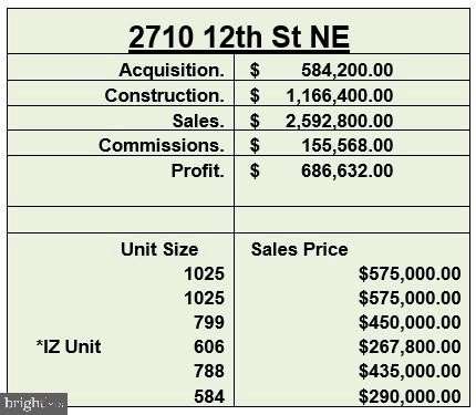 For an Investor/Builder/Developer or house hacking primary residence owner. Build this potential 6 unit and sell as condos or dont subdivide it and create a 6 unit apartment. Or live in one and rent / AirBnB the others. This commercially zoned vacant lot is perfect for a by right project as it helps avoid so many of the complexities associated with adding to DCs housing stock. --No chimney setback issues --No adjoining property on either side that would cause 10 rule --The previous structure was already demolished eliminating that risk and cost --Theres no required lengthy underpinning of adjoining structures --The property already has a curb cut. --Schematic Design phase with Cross Design Group already paid for. --New structure would still not connect to neighboring structures on either side. The architecture firm has determined theres a total buildable square footage of 5,184sf if you go for the IZ bonus. Please see the prospective pro forma in the photos that is made in accordance with the buildable square footage and uses a cost of construction equal to $225 per sf. The property is fenced off for safety so please view property at your own risk.