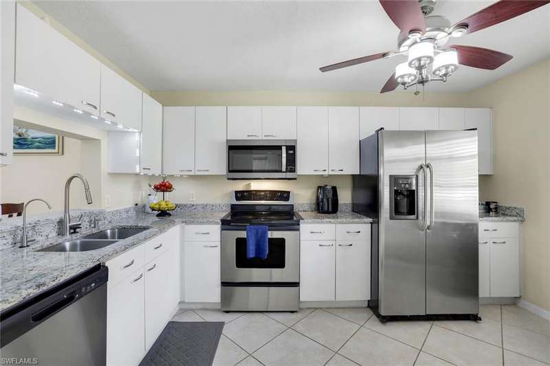 First-Floor Condo in Prime North Naples Location: This nicely updated and meticulously maintained 2-bedroom, 2-bath first-floor condo offers an abundance of natural light and a spacious open floor plan. The modern kitchen features recently installed granite countertops and stainless-steel appliances. The master bedroom has an updated ensuite bathroom featuring dual vanities. The guest bedroom and updated second bath offer versatility in that it is ideal for guests, a home office or as a hobby space. The split-bedroom layout offers comfort and privacy for both owners and guests. Recent Upgrades Include: * Microwave (2023) * Garbage Disposal (2025) * Reverse Osmosis Water Filtration (2023) * Central Air Conditioning (2018) * Smoke Detectors (2023) * Ceiling Fans (2023) This condo includes one assigned covered parking space, an additional resident space and ample guest parking. The community will become a gated community in early November for added security. This condo i