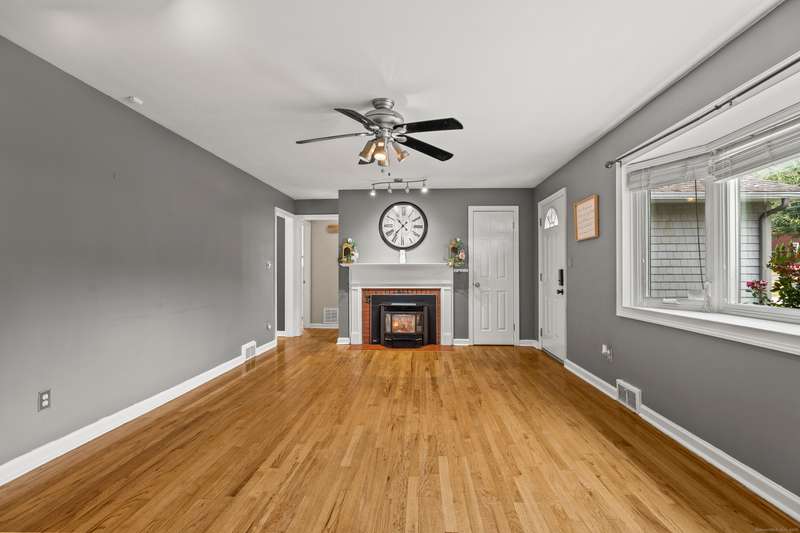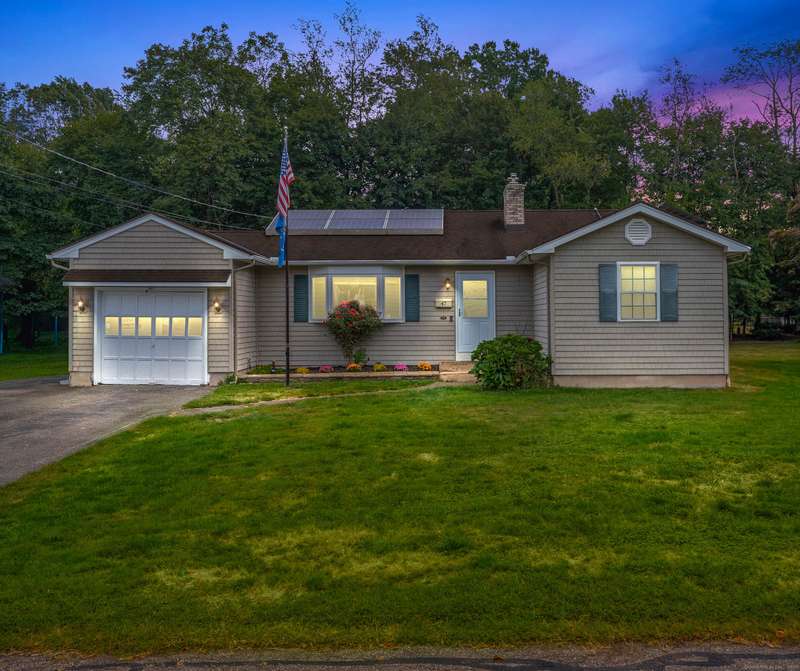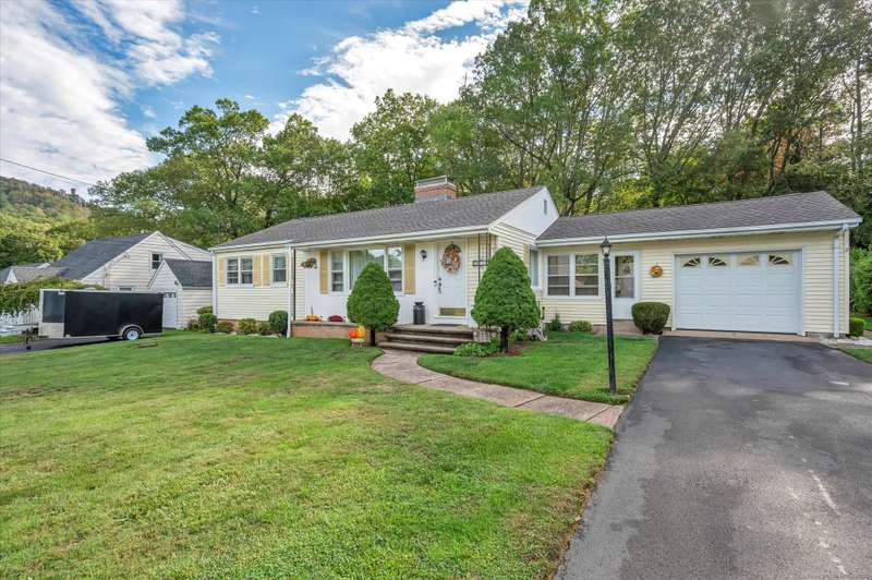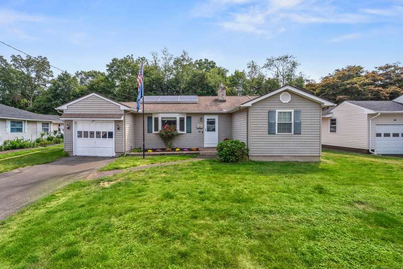 MULTIPLE OFFERS RECEIVED HIGHEST AND BEST DUE SATURDAY BY 9PM. Welcome home to this beautifully maintained ranch, perfectly situated at the end of a quiet cul-de-sac. This 2-bedroom, 1-bath home offers comfort, style, and convenience. The galley kitchen features modern stainless steel appliances, while the living room showcases a cozy fireplace and gleaming refinished hardwood floors. A partially finished basement provides flexible spaces for a home office, gym, and recreation room, with plenty of extra storage. Newer mechanicals throughout and solar bring added peace of mind. The attached 1-car garage completes the package. Outside, enjoy a fully fenced yard with a custom-built chicken coop and garden area, perfect for homesteading or outdoor enjoyment. Located just a few steps away from Israel Putnam Elementary School and only minutes from the I-91/I-691 corridor, shopping, dining, and entertainment, this home perfectly blends suburban tranquility with everyday convenience. Don