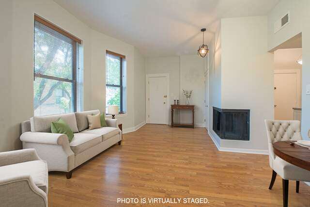 Enjoy living in a gated community in the heart of East Lakeview! This top floor vintage rehab home shines with lots of windows facing north and south and 10' ceilings. Enjoy the woodburning fireplace on chilly nights and the semi-private deck to grow some herbs and flowers! This condo was just completely painted and ready for its new owner. The white kitchen features stainless appliances and a portable washer and dryer. The location couldn't be better - easy access to busses and the El. Just a few blocks from Lake Shore Drive. This vibrant and convenient neighborhood features many restaurants, shopping (Marshall's, Target, Ulta, DSW, Binny's) hospital and medical center, bike lanes, veterinarians, etc. The building replaced the horizontal water pipes in 2024.