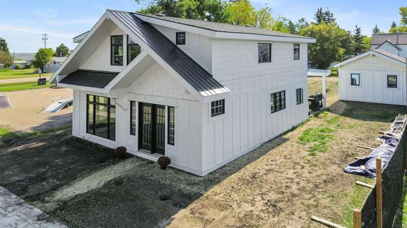 Welcome to 4105 Wallace St in the village of Donalda, AB, where small-town living meets modern updates. Set on a quiet street lined with mature trees, this property offers both a comfortable move-in-ready space with the opportunity to expand. The main home features 1 bedroom, 1 full bathroom, a cozy dining/living space, and a functional kitchen—perfect for immediate living. Attached is a framed two-storey addition offering up to approx. 1,500 sq. ft. of flexible space to design your way—whether you envision extra bedrooms, a future bathroom, laundry, or a spacious family area. Because the addition is not currently heated or finished, it is not included in the RMS reported square footage, giving buyers a blank canvas to create the layout that best suits their lifestyle. The finishing of this addition is not included in the purchase price. The seller, who is also the contractor, has completed the work to date and could be available to complete the project separately, allowing you to bring your vision to life. The curb appeal is a standout, showcasing a brand-new exterior with a stylish blend of board-and-batten, horizontal siding, and shakes—all accented by black windows and trim, shingles, soffit, and fascia. An attached rear pergola adds charm, while the detached garage with newly added extra storage space upfront and RV parking makes the property as practical as it is beautiful. Life in Donalda is full of small-town charm and community spirit. Families will appreciate the local K–9 school, while outdoor enthusiasts can enjoy the scenic Meeting Creek Coulee with its walking and hiking trails. The village also offers an indoor and outdoor riding arena, a cozy Tea House, and is famously home to one of the best steak and wing nights in the area. Ideally located, the community provides easy access to Stettler, Camrose, and the recreational paradise of Buffalo Lake—all just a short drive away. If you’re looking for a home in a welcoming community with the peace of small-town living and the convenience of nearby amenities, this Donalda property is a unique opportunity—move-in ready today, with space to grow for tomorrow.