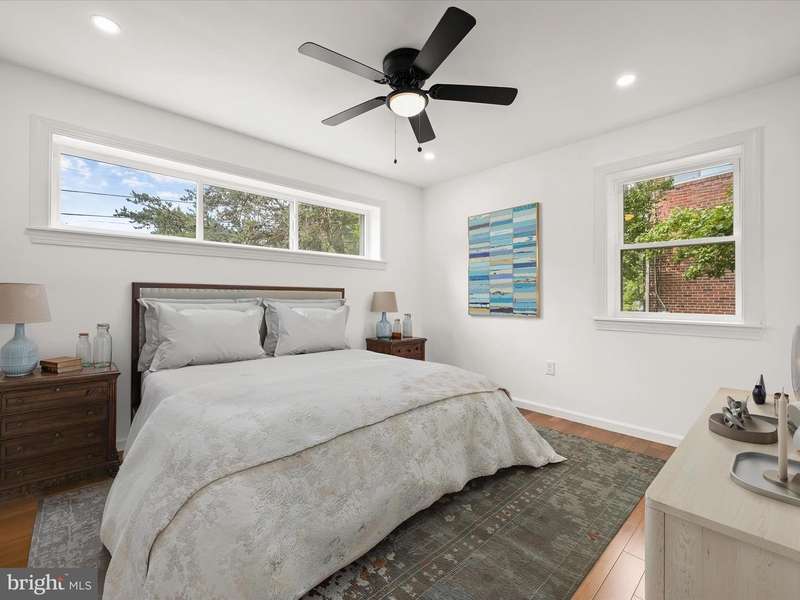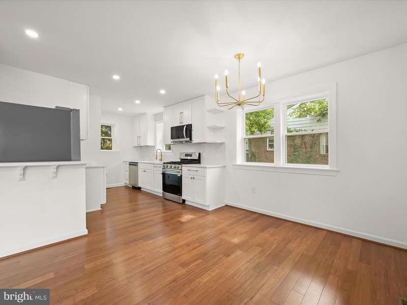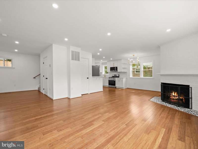 Completely reimagined in 2024, this stunning residence in the heart of historic University Park offers nearly 4,000 square feet of beautifully finished living space, seamlessly blending modern design with timeless charm. With 5 bedrooms, 4.5 baths, and dual primary suites, one on the main level and another upstairs, this home is thoughtfully designed for comfort, flexibility, and multi-generational living. Striking curb appeal welcomes you, hinting at the impeccable design found within. Step through the front door into an airy, open-concept main level, where warm hardwood floors and recessed lighting flow throughout expansive living, dining, and kitchen spaces. A picture window in the living room fills the space with natural light and beautifully illuminates the wood-burning fireplace with its white brick surround. The adjacent dining room flows effortlessly into the kitchen, where no detail was spared, from soft-close white 42-inch cabinetry and quartz countertops to a tile backsplash and sleek stainless steel appliances, including a gas range. Brass and black hardware add a sophisticated edge throughout the home, complementing the curated, design-inspired finishes. The main level also includes a luxurious primary suite featuring a spacious walk-in closet and a spa-like en suite bath with a double vanity and a glass-enclosed wet room that combines a rainfall shower and soaking tub for ultimate relaxation. Upstairs, four sizable bedrooms include a second primary suite complete with three closets and a stylish attached bath with a dual-sink vanity. A full hall bath and a cozy loft area, perfect for a desk or reading nook, round out the upper level. Just a few steps down from the kitchen, a large family room addition offers a vaulted ceiling, electric fireplace, and access to the side yard, making it an ideal space to unwind or entertain. The finished lower level expands the living space with a sprawling recreation room, an additional full bath, a large laundry room, and a walk-in storage room, providing abundant functionality for modern lifestyles. Out back, the fully fenced yard is both private and practical, complete with a storage shed and plenty of room to garden, play, or host gatherings. A generous driveway allows parking for multiple vehicles. Every major system has been updated for peace of mind: roof, water heater, appliances, windows, and dual-zone HVAC were all replaced in 2024. Enjoy the best of small-town charm and city convenience just steps from the neighborhood park, playground, EV charging station, and all that University Park has to offer. With easy access to two Metro stations, the MARC train, University of Maryland, Trader Joe's, Riverdale Town Center, and the upcoming Purple Line, this rare find combines history, luxury, and location into one truly exceptional home. Please note: photos depicting furniture have utilized virtual staging.