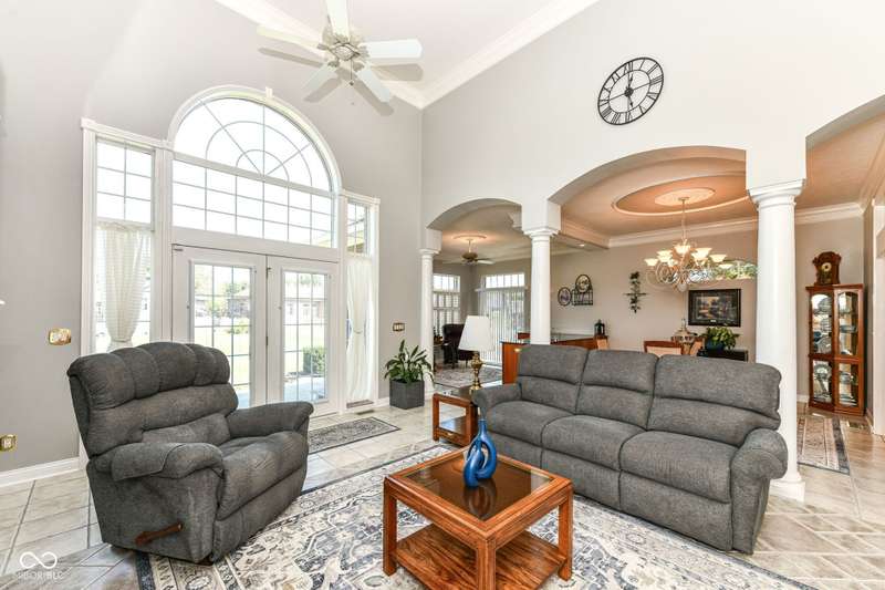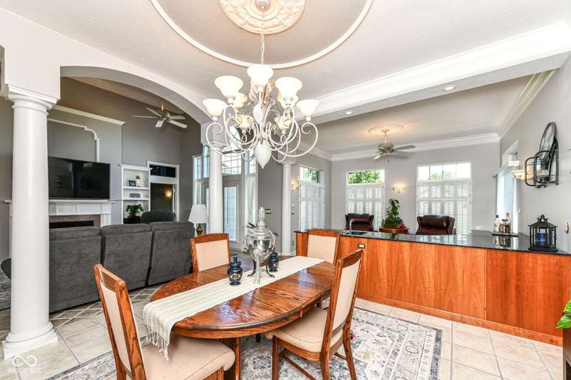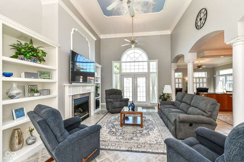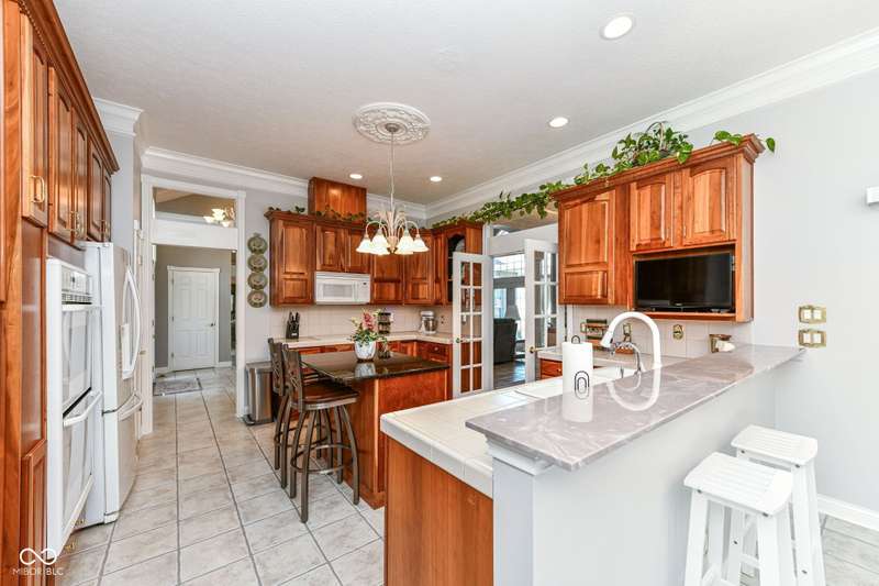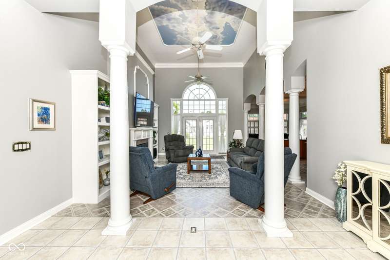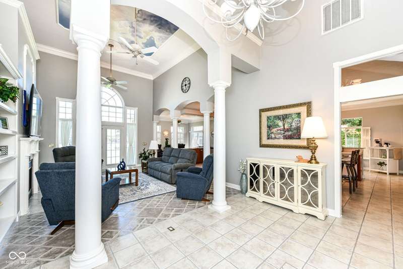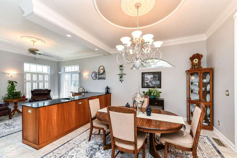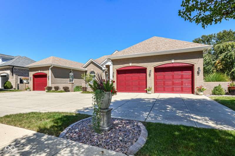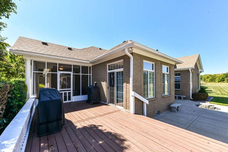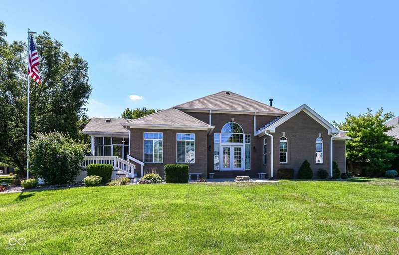 Comfort and Elegance combine nicely in this extremely clean and well maintained home. Located minutes from the heart of Noblesville and a short drive to 31 your new home has it all. Enjoy the extra storage and easy parking with three garage bays and a large driveway. Entering your home you are welcomed by beautiful soaring ceilings with a large family room that opens to a wet bar area or sitting room (you choose) and a nice sized dining space that is just steps to the kitchen featuring double ovens, island, beautiful cabinets! Outside the kitchen is a sun porch that is just perfect for your morning coffee overlooking the pond. Enjoy a peaceful evening on the deck listening to the water feature of the pond. Your spacious primary bedroom and en suite is just lovely, be sure to notice the large walk in closet! Office/Bedroom is adjacent to the third car garage -- perfect for your workshop, collector car or added storage. Third bedroom has great space and a nice closet. Your new home is ready for you! Welcome home!