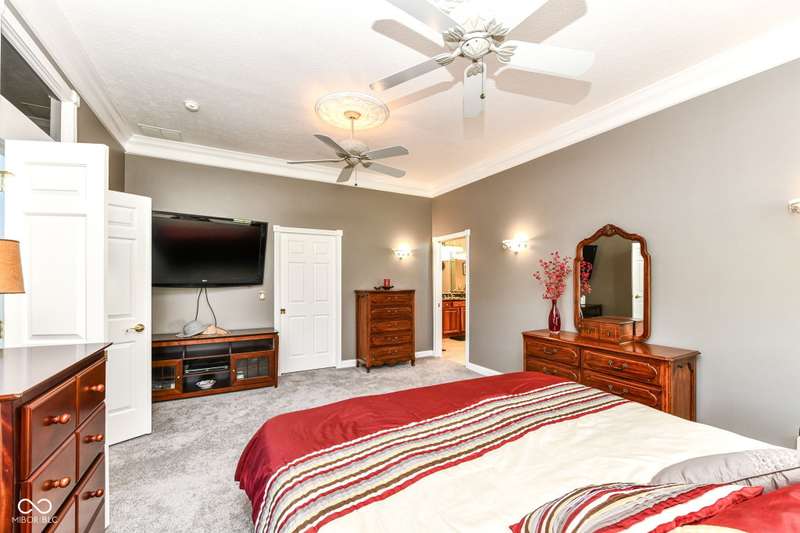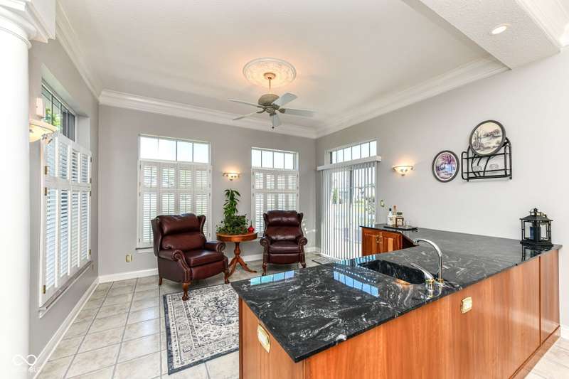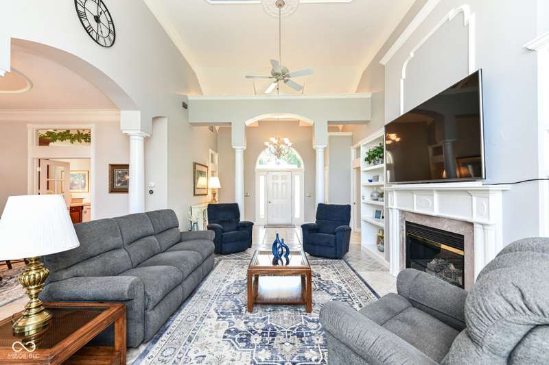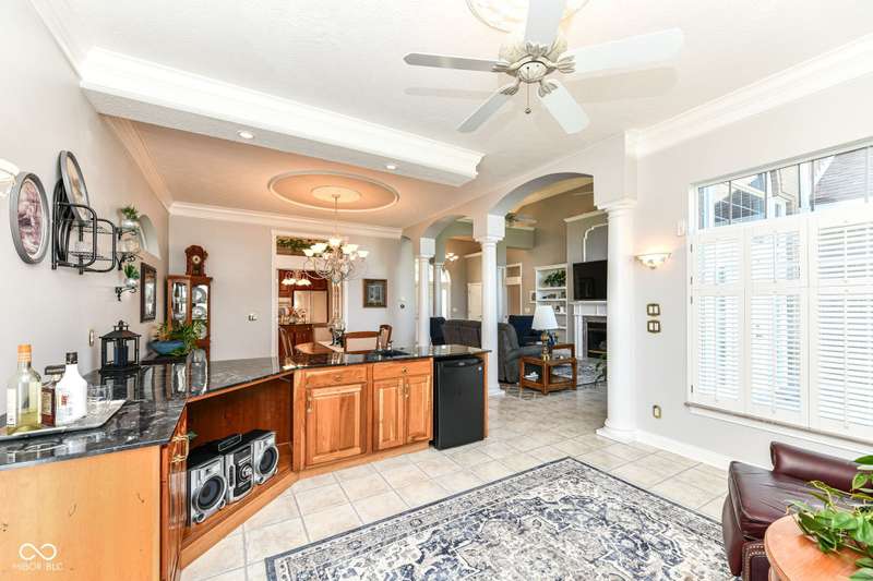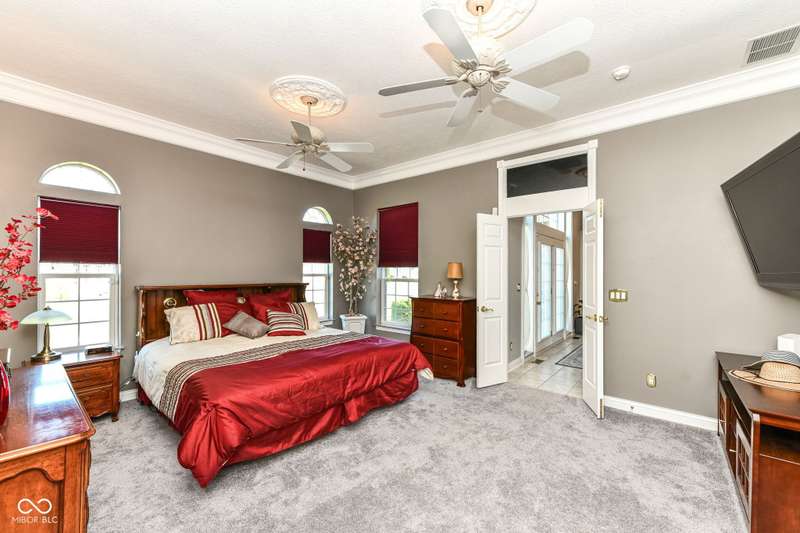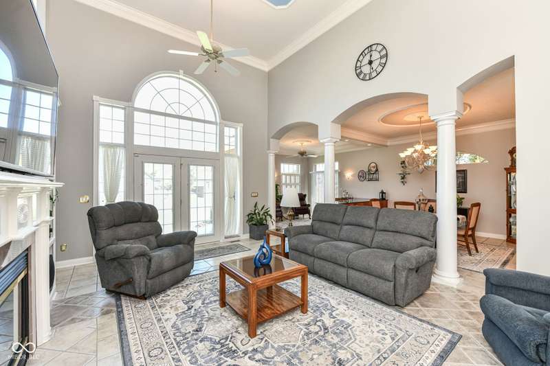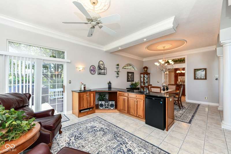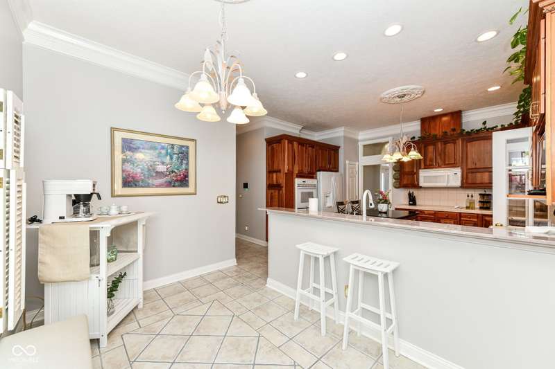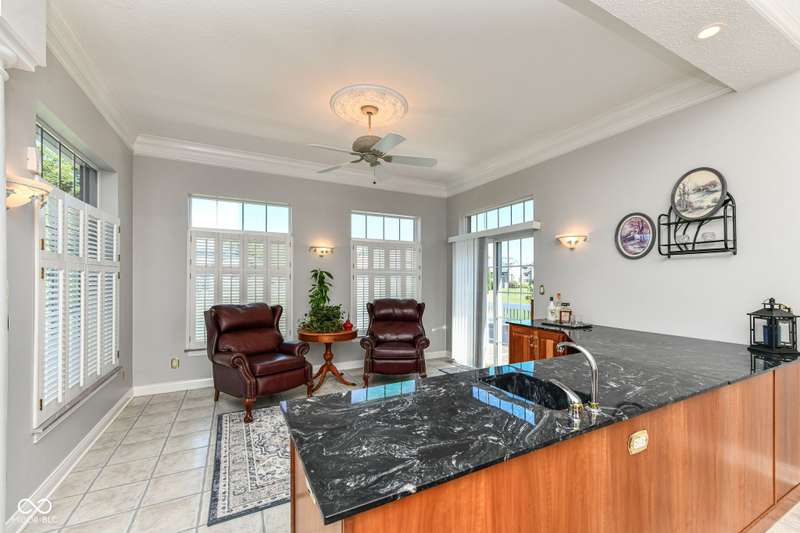 Comfort and Elegance combine nicely in this extremely clean and well maintained home. Located minutes from the heart of Noblesville and a short drive to 31 your new home has it all. Enjoy the extra storage and easy parking with three garage bays and a large driveway. Entering your home you are welcomed by beautiful soaring ceilings with a large family room that opens to a wet bar area or sitting room (you choose) and a nice sized dining space that is just steps to the kitchen featuring double ovens, island, beautiful cabinets! Outside the kitchen is a sun porch that is just perfect for your morning coffee overlooking the pond. Enjoy a peaceful evening on the deck listening to the water feature of the pond. Your spacious primary bedroom and en suite is just lovely, be sure to notice the large walk in closet! Office/Bedroom is adjacent to the third car garage -- perfect for your workshop, collector car or added storage. Third bedroom has great space and a nice closet. Your new home is ready for you! Welcome home!