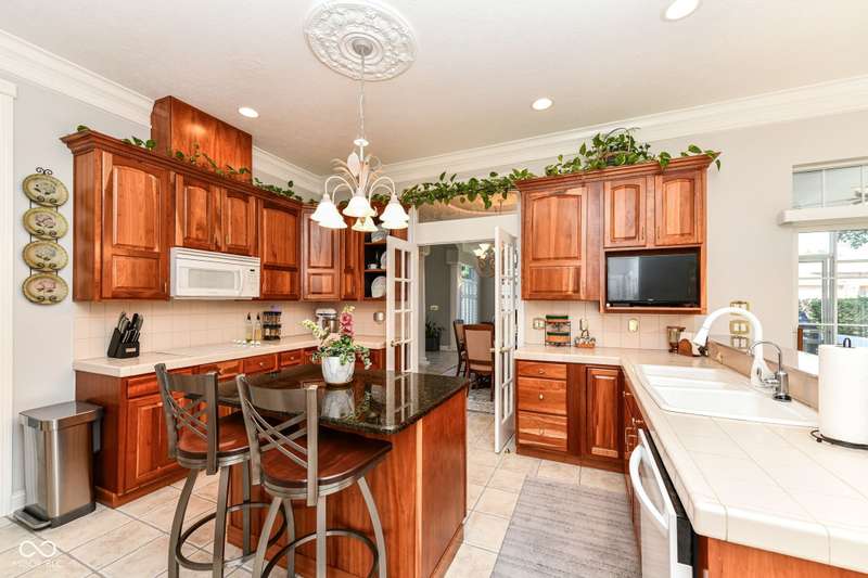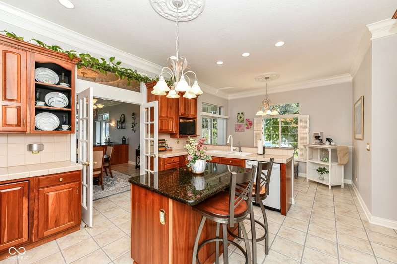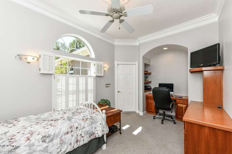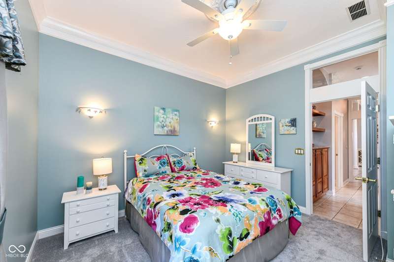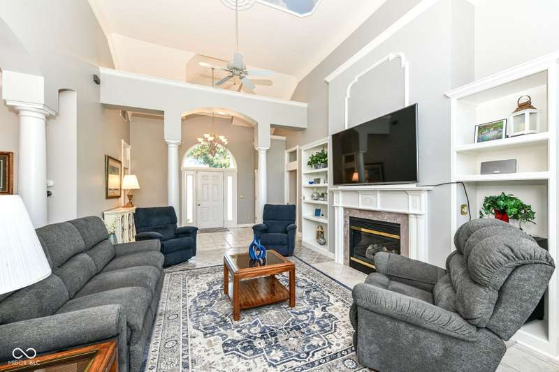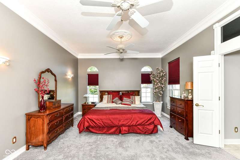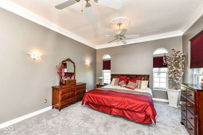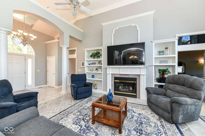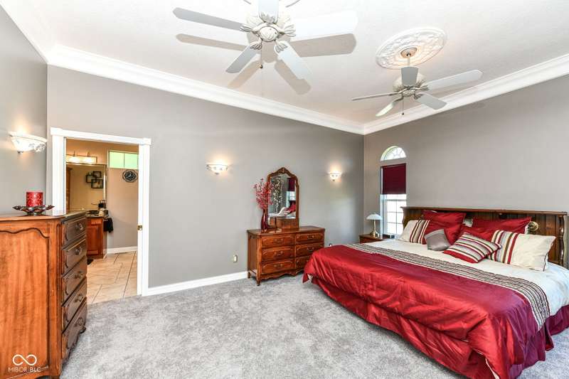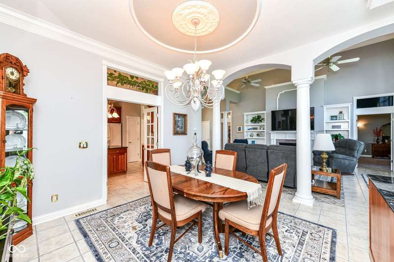 Comfort and Elegance combine nicely in this extremely clean and well maintained home. Located minutes from the heart of Noblesville and a short drive to 31 your new home has it all. Enjoy the extra storage and easy parking with three garage bays and a large driveway. Entering your home you are welcomed by beautiful soaring ceilings with a large family room that opens to a wet bar area or sitting room (you choose) and a nice sized dining space that is just steps to the kitchen featuring double ovens, island, beautiful cabinets! Outside the kitchen is a sun porch that is just perfect for your morning coffee overlooking the pond. Enjoy a peaceful evening on the deck listening to the water feature of the pond. Your spacious primary bedroom and en suite is just lovely, be sure to notice the large walk in closet! Office/Bedroom is adjacent to the third car garage -- perfect for your workshop, collector car or added storage. Third bedroom has great space and a nice closet. Your new home is ready for you! Welcome home!
