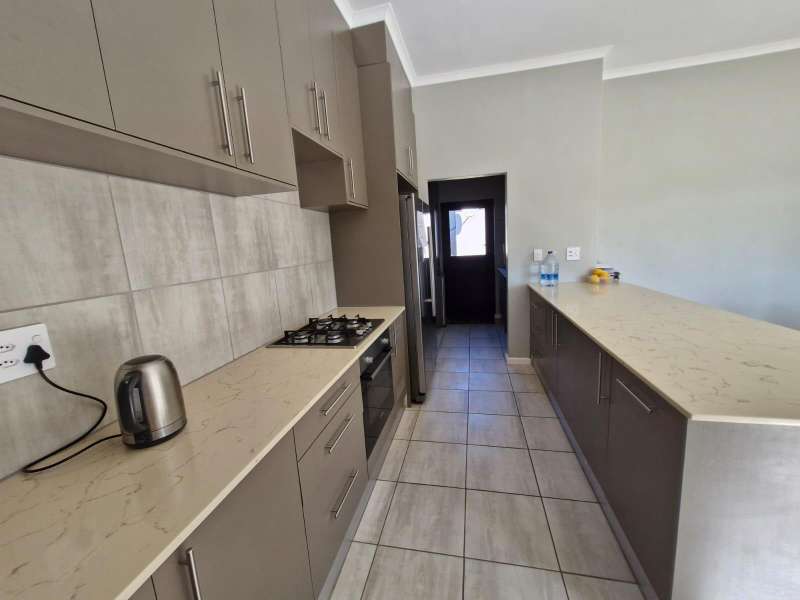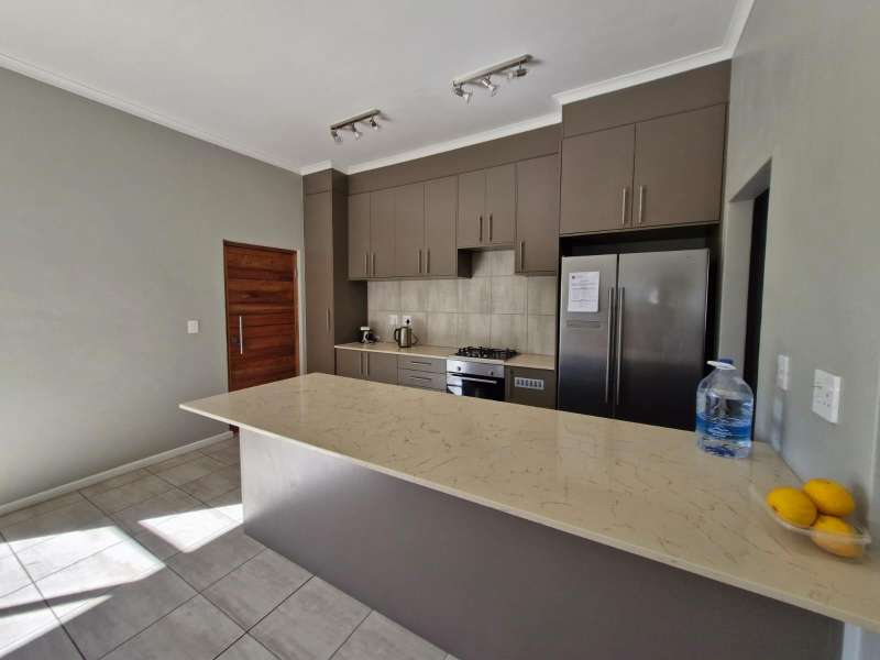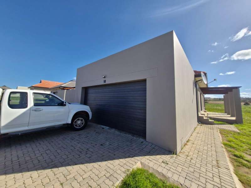 For those seeking all the comforts of Country Estate living while still being just 20kms from the airport and town. Ideally located near the beach, restaurants, private schools, shopping centre, this home provides the perfect blend of convenience and serenity. This newly built family home provides spacious open plan living area with a modern fitted kitchen featuring granite countertops, gas hob with an electric oven. Separate scullery, laundry area. Three comfortable size bedrooms offering plenty of built in cupboards. Two bathrooms one full bathroom. Light and spacious master bedroom offering ample built in cupboards with an en suite. This property includes a double garage with an automated garage door and a paved driveway. Outside courtyard with water tank for backup water. Fitted with Solar panel for any power outages. 24 security gated estate, providing peace of mind. Be part of this beautiful estate. Call me today for an exclusive viewing.