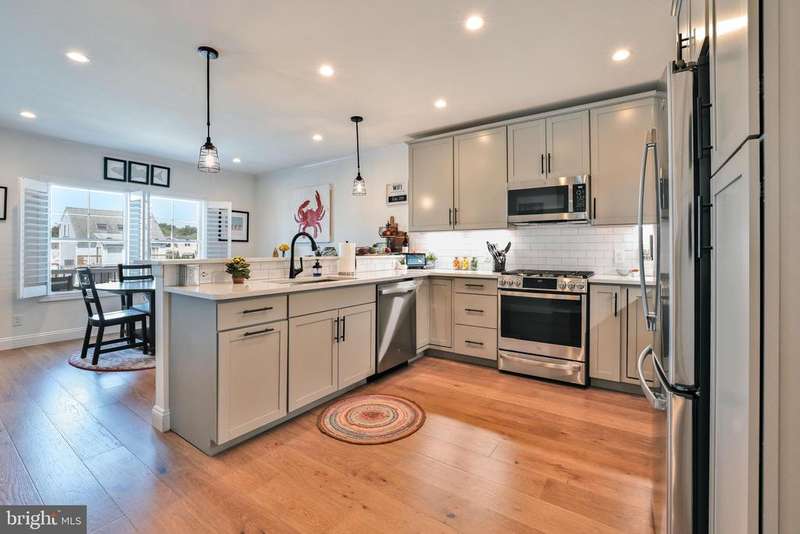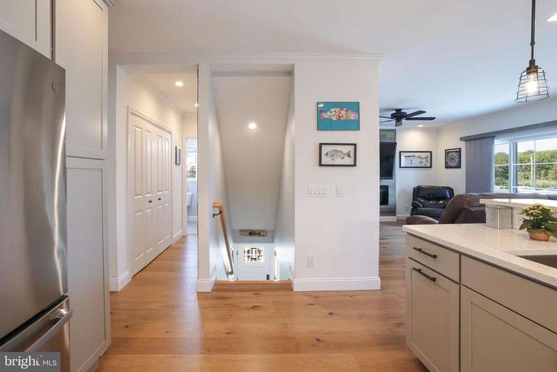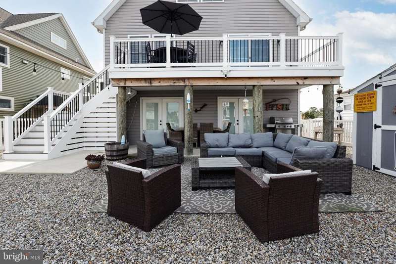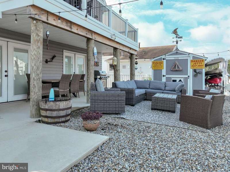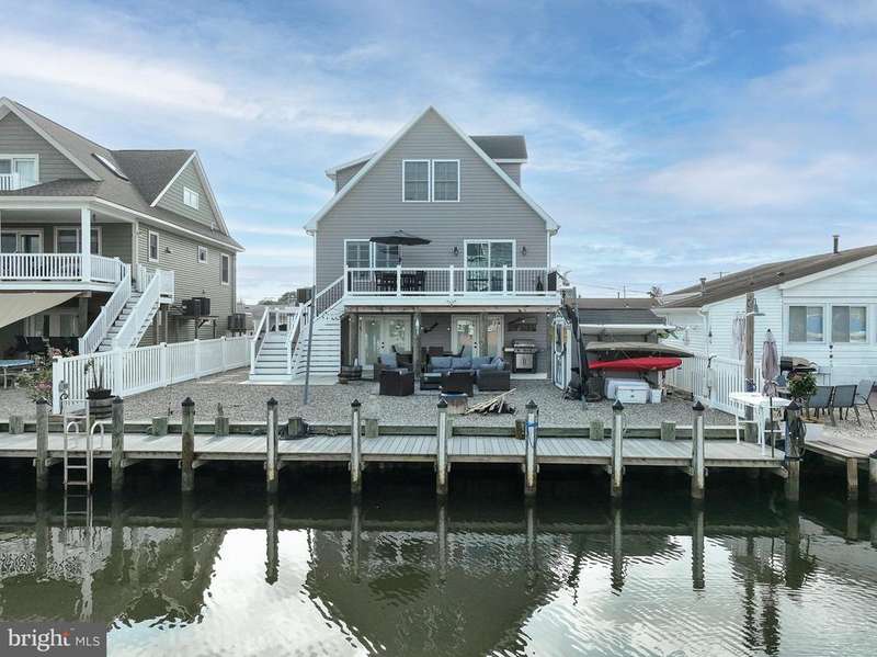 Welcome to 5 Sands Point Rd. Built in 2020 - This stunning, raised 3-bedroom, 2.5-bath home offers a bright and spacious open-floor plan perfect for comfortable living. Enjoy breathtaking water views from this lagoon-front property. Beautifully appointed kitchen features granite counters, stainless steel appliance, custom tile backsplash, and a large peninsula with an undermount sink. Recessed lighting and luxury vinyl plank flooring run throughout the majority of the home. 50 foot vinyl bulkhead with composite decking - sprawling rear deck off the main level - oak staircases and rails with matte black spindles - Large primary suite with full bath and a walk in closet - 2 zoned HVAC - partially finished ground level area great for entertaining featuring ductless heat and A/C, epoxy floors, double french doors that open out to the backyard and covered concrete patio - dual hard-lined gas grill hookups - outdoor shower - 2 car garage - partially fenced yard - outdoor shed - water and electric at the dock - all located in a quiet location just minutes to the open bay.