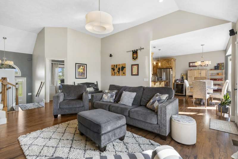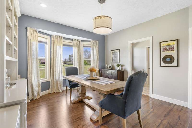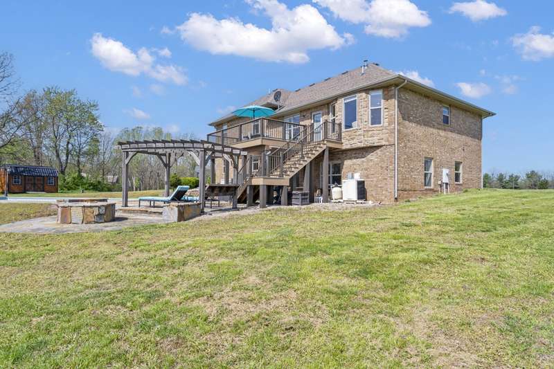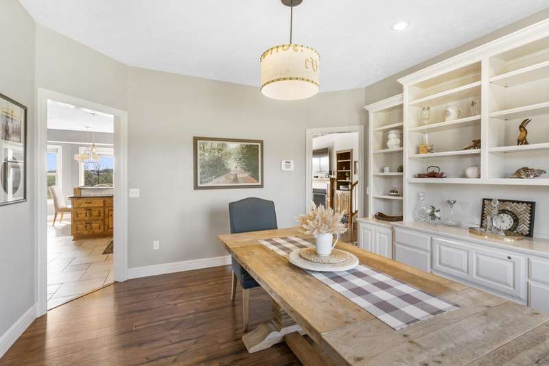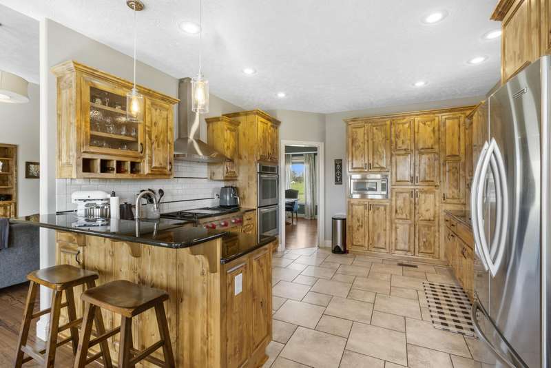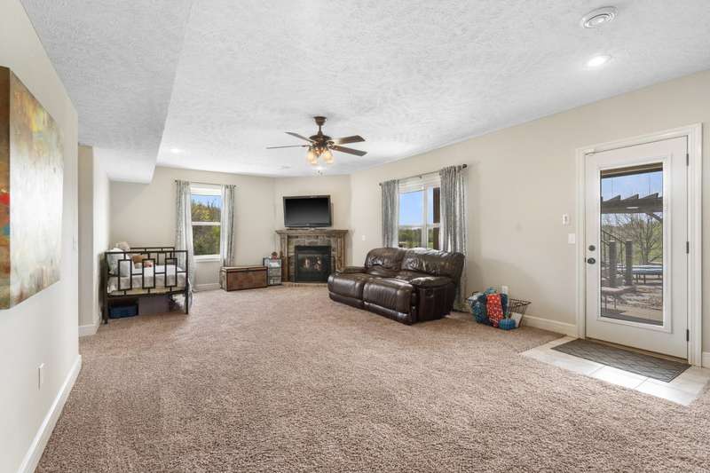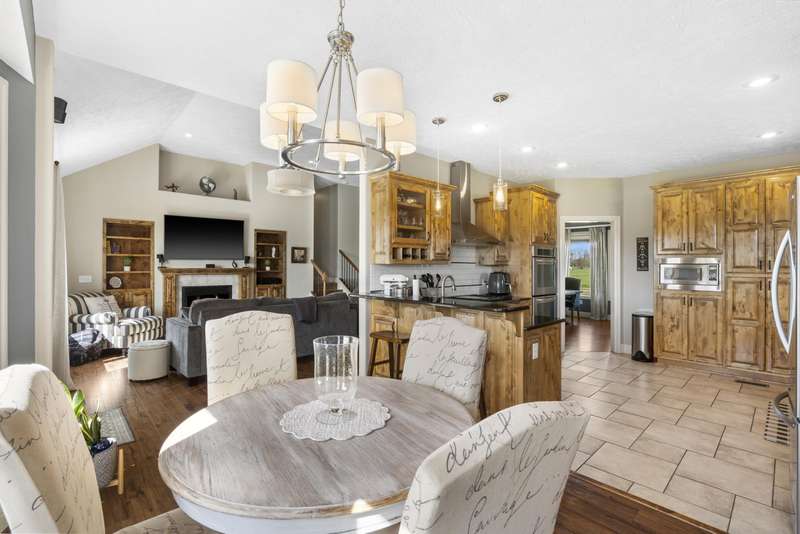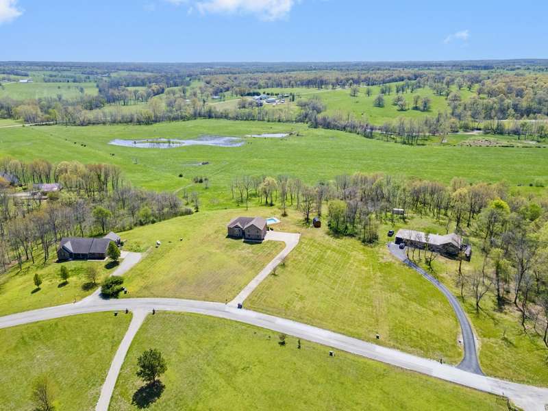 Stunning all-brick & stone home on 5.1 acres near Aurora, Missouri's Honey Creek Golf Course. Enjoy breathtaking countryside views, a saltwater pool, wildlife sightings, and luxury living throughout. This custom 4 bed, 3.5 bath home features a gourmet kitchen with Wolf appliances, hardwood floors, high ceilings, and a spa-like primary suite with heated marble floors & walk-in closet. The walk-out basement includes a second living space, a soundproof studio, and more. Heated 3-car garage with built-in bar, TimberTech deck, firepit patio, whole-house generator & top-tier finishes throughout. This home offers breathtaking panoramic countryside views. From vibrant sunrises and sunsets to frequent visits from deer, turkey, and other wildlife, the setting provides a peaceful, private retreat. An in-ground saltwater pool with an automatic cover adds the perfect touch for both relaxation and family fun. Custom-built in 2012 by renowned builder Bill Michel, this home reflects superior craftsmanship and timeless design. Inside, rich hardwood floors, soaring ceilings, and two cozy gas fireplaces create a warm and elegant atmosphere. The formal dining room includes a built-in China hutch and bookcase, making it ideal for hosting or everyday use. The chef's kitchen is a true standout, featuring custom Alder cabinetry, granite countertops, and top-tier stainless-steel appliances including a Wolf gas cooktop with griddle, double ovens, built-in microwave, and refrigerator. With a double sink and a second prep sink, the space is as functional as it is beautiful. A spacious breakfast nook with breakfast bar leads directly to the maintenance-free Timber Tech deck--perfect for outdoor dining and entertaining. Call today for your private showing. This home & property will not disappoint!