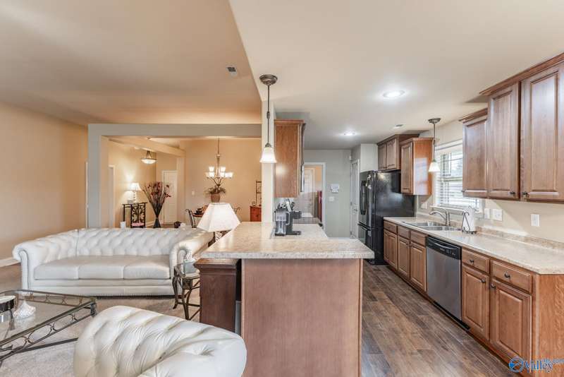 This beautifully maintained 3-bedroom, 2-bath ranch offers comfort, style, and convenience all in one. Enjoy welcoming curb appeal with a covered front porch, and relax or grill your favorite meal with friends and family on the covered back patio. Inside, hardwood floors flow through the kitchen, dining room, foyer, and breakfast area, while the kitchen features stainless steel appliances and a functional layout. The guest bath has been stylishly renovated, adding a modern touch. Ideally located near I-565, Redstone Arsenals Martin Road gate, and Huntsville International Airportthis home combines easy living with unbeatable access to key destinations.