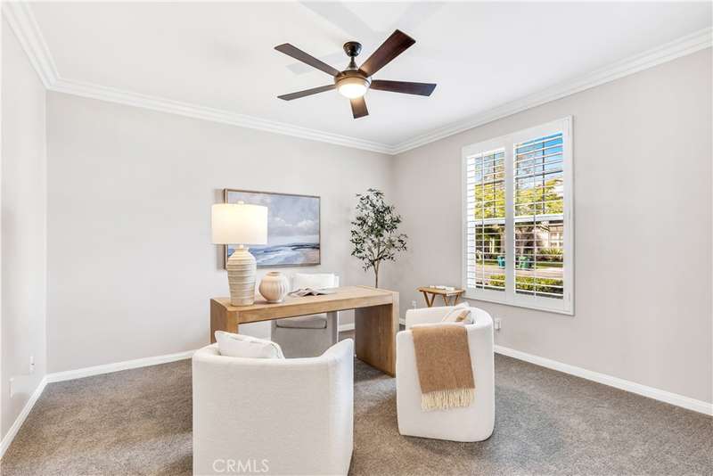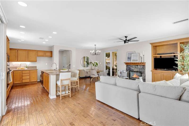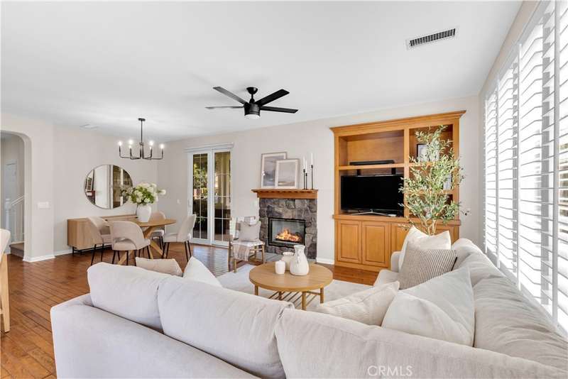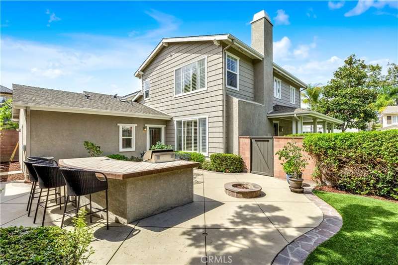 Enjoy the Ladera Ranch lifestyle in this Traditional Craftsman home, located on a unique 6,500 sq. ft. lot in Oak Knoll Village - walking distance to some of the community's most popular amenities. Exceptionally cared for, this residence features 3 bedrooms, 2.5 bathrooms, and a versatile 4th room: main-floor flex room - perfect as a home office, guest area, or additional family space. This 6,500 sq. ft. corner lot offers privacy, multiple outdoor spaces, and the potential for future additions, with plans outlining options to add just over 800 sq. ft. of living space. Exterior highlights include a welcoming wraparound porch - overlooking a front yard that extends around the side of the home, plus an extra-long driveway with a gated porte-cochere that doubles as secure additional outdoor space, and a low maintenance backyard featuring a built-in BBQ island, turf and privacy hedges. With three access points from the main living area, the indoor-outdoor flow is seamless. Interior finishes include wood floors, new carpet, fresh paint and premium window treatments including: Hunter Douglas Plantation Shutters and Honeycomb Shades. The kitchen provides generous cabinet space, a central island with seating, and under-cabinet lighting. All three bedrooms, along with a laundry room are situated upstairs. The primary suite features a walk-in closet with a custom California Closet system and a true master bathroom with dual vanities, a make-up station, private washroom, and separate tub and shower. The secondary bedrooms, also with built-in closet systems, share a beautifully remodeled Jack and Jill bathroom with quartz counters, a hexagon tile backsplash, new dual vanity, and a new tub with tiled shower. All bathroom fixtures, faucets and appliances are Kohler. Systems Updates include: whole house repipe (copper), tankless water heater, and all electrical outlets updated throughout the home. Best of all is how many amenities are within easy walking distance from this home including: Oak Knoll Clubhouse with 2 pools, a splashpad, and multiple outdoor entertaining areas (recently renovated), Dawnwood Park, Cox Sports Park, Scenic Trails, and the Community Farm (in development). With access to top-rated schools, unmatched amenities, and many annual community events you'll love life in Ladera Ranch. HOA Dues include high speed internet.