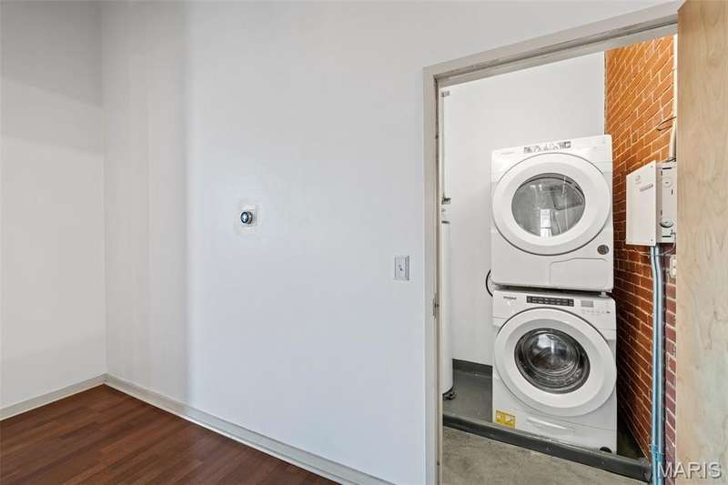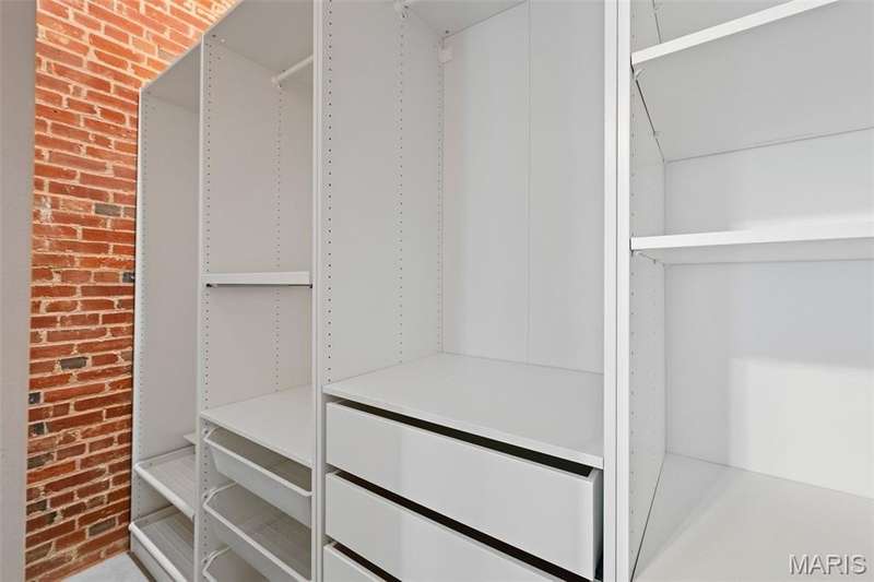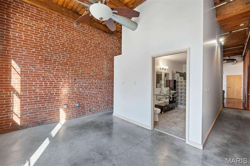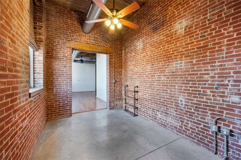Welcome to Moon Brothers Lofts—where historic charm meets modern sophistication. This exceptional 2-bedroom, 2-bath loft is truly one of the building’s standouts, blending character, comfort, and thoughtful upgrades that set it apart from the rest. From the moment you step inside, soaring wood-beamed ceilings, exposed brick, and gleaming hardwood floors create an inviting backdrop flooded with natural light. The open-concept living, dining, and kitchen area is anchored by a large granite island—perfect for entertaining or casual dining. Custom lighting highlights every detail, while stainless steel appliances and sleek finishes add a touch of modern luxury. The smart floor plan offers privacy with bedrooms on opposite ends of the loft. Your spacious primary suite is a true retreat, featuring a generous walk-in closet and a spa-inspired bath with dual vanities, custom cabinetry, and an oversized glass shower. The second bedroom is ideal for guests, a home office, or both. Additional conveniences include in-unit laundry, an assigned parking space in the garage, and extra storage. Beyond your front door, enjoy the building’s rooftop deck with sweeping city views, plus a rare ground-level dog park for your four-legged friends. All this in a prime location, steps from the City Museum, local dining, and the best of downtown living. If you’ve been waiting for a loft that checks every box—this is the one. Schedule your private showing today!