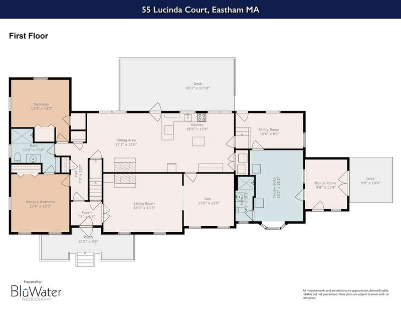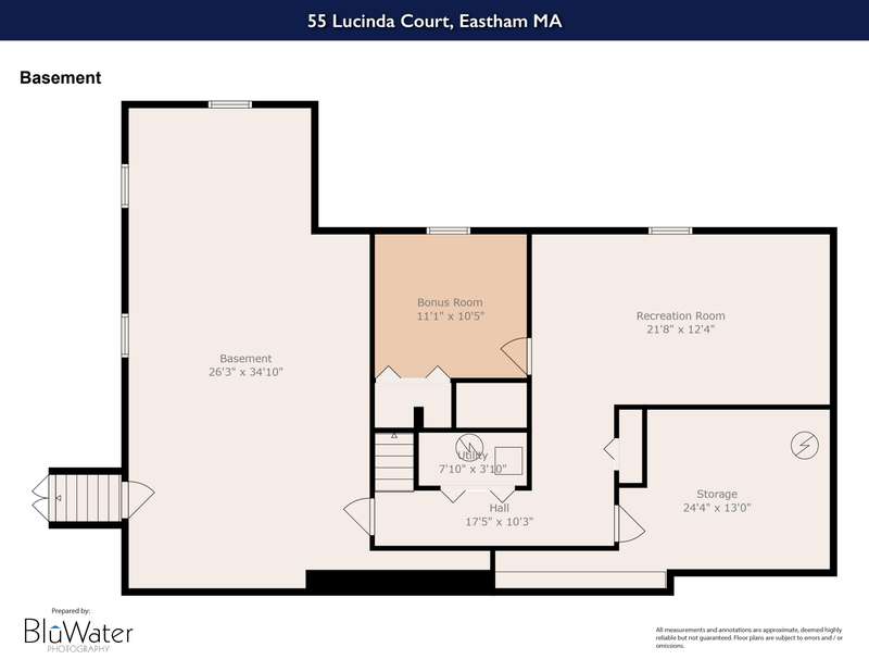An expansive Cape style home at the end of a quiet cul-de-sac is waiting for new owners to begin the next chapter. 55 Lucinda Court has been a place called home for a multigenerational family over many years. A farmer's porch designed for enjoying the neighborhoods pride in ownership greets all who arrive to the home. Through the front door is a formal living with a wood burning fireplace leading into a den & large country style kitchen with a designated laundry closet. A first-floor primary bedroom & second bedroom with full bath complete the entry level. Outside of the kitchen is a large mudroom giving access to an in-law suit. The space includes a living room, private bedroom, full bathroom and access to a small deck. The second floor is a private setting with an additional bedroom and bonus room separated with another full bathroom. There is exterior egress with a set of stairs providing private access to this level. The lower level is partially finished with a recreational