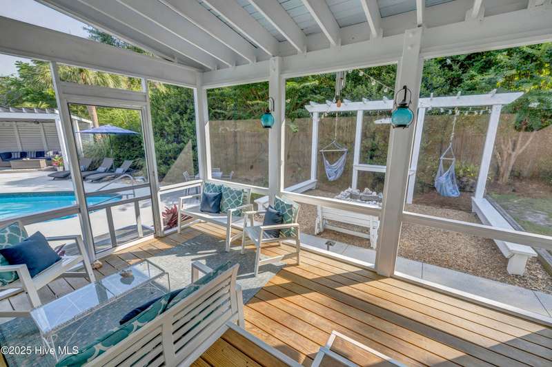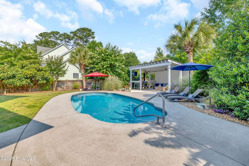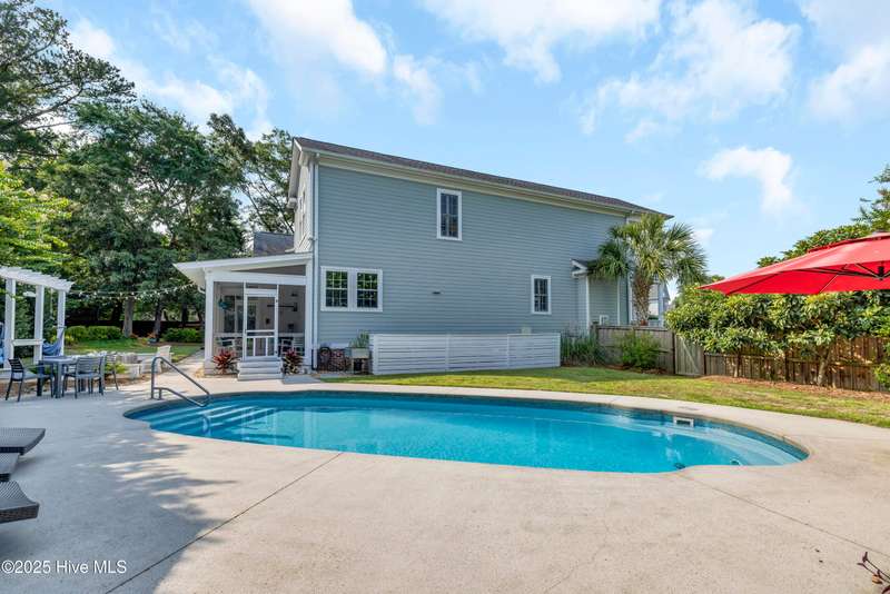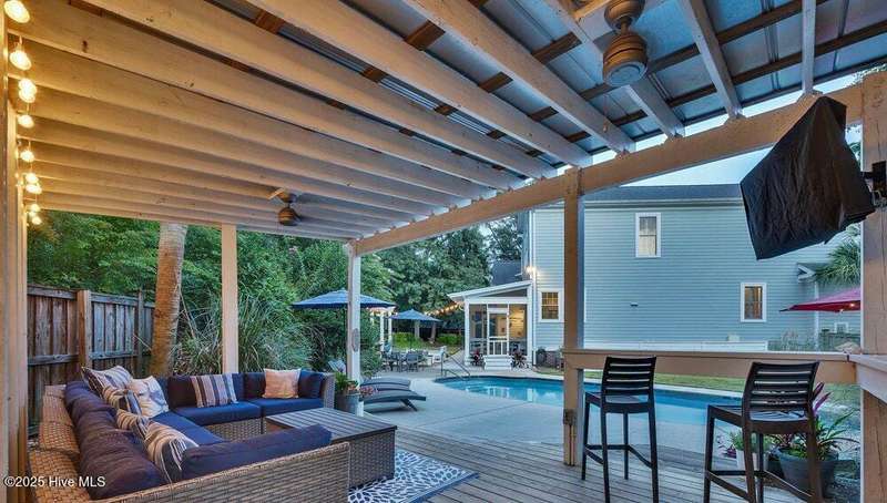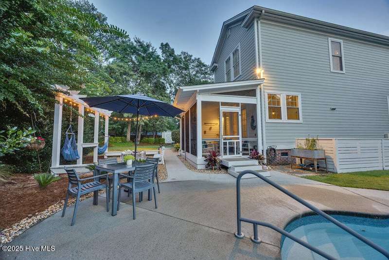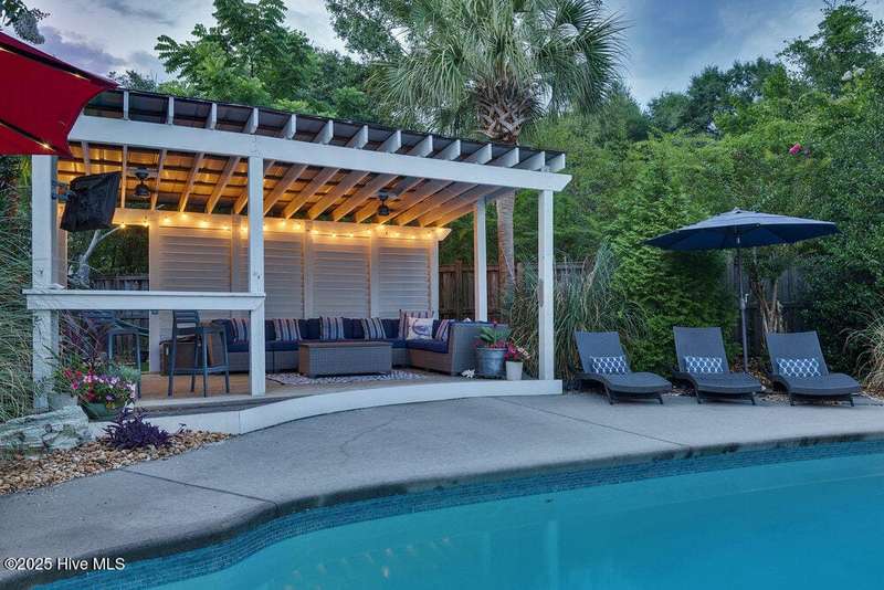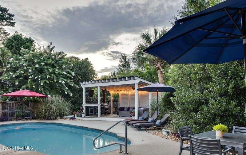 Coastal dreams come to life in this Charleston-style stunner, tucked away on a cul-de-sac in the sought-after community of Purviance Landing. Step into the heart of the home where an open floor plan seamlessly connects the living room, dining area, and a gorgeous kitchen with custom cabinetry and countertops. A flexible office/guest room includes built-ins, a murphy bed, and access to a full bathperfect for visitors or remote work. Upstairs, the primary suite is a true retreat with a private balcony, bathroom with soaking tub, dual vanities, walk-in shower, and large walk-in closet. Two more bedrooms and a renovated bathroom complete the upstairs. The room over the garage with shiplap walls and TV/surround sound system is a great space to unwind. But it's the backyard that steals the show. Set on a fully fenced .42-acre lot and tucked into ''outdoor rooms,'' you'll find a sparkling pool, a fire pit covered in oyster shells under twinkle lights, a shaded treehouse, a screened-in porch, a cabana with a TV and fans, and a hammock area just waiting for your next nap. Whether you're hosting a summer pool party or enjoying a quiet morning coffee, this backyard is pure magic. Located in the water-access neighborhood of Purviance Landing with a day dock on Whiskey Creek for kayaking and paddleboardingand zoned for the sought-after Masonboro, Roland-Grise, and Hoggard schoolsthis home is a rare Wilmington gem.