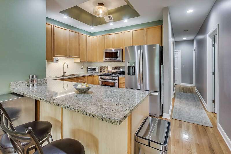 Awesome natural light flows through this 2 bed/2 bath, high quality West Town condo rental with attached garage parking in an elevator building. From its 9.5' plus ceiling height and south-facing balcony to a full primary suite and open-concept living, 814 Hubbard #3 has so much to offer. This third-floor, West Town condo boasts updated finishes, great entertaining space, Nest thermostat, Andersen windows, gas fireplace and hardwood floors throughout. The unit underwent a cosmetic rehab in 2021 that invigorated the interior with fresh paint throughout, new lighting fixtures, Lutron light switches, and a complete redesign of the hall bath. Kitchen features imported Italian subway tile backsplash, newer farmhouse style sink, touchless faucet, LG/Whirlpool stainless steel appliances, granite countertops and large breakfast island. Airy living area with both southern and eastern exposures opens to a near full-width front balcony looking southeast over the city, offering picturesque skyline views. Spacious primary suite provides east facing views stretching to John Hancock, large walk-in closet with organizers and an en-suite bath featuring jetted tub, separate shower and double-bowl vanity. The second bedroom, also offering eastern exposure, has two closets and enough space for a desk and a queen bed. The hall bath redesign features quartz countertops, a new vanity and soft-close cabinetry. In-unit LG washer/dryer. Incredible location close to some of the best restaurants in the city, Fulton Market, Randolph St, Grand Blue Line and 65 Bus. Cable/HBO/Showtime, Internet, storage and attached heated garage parking all included in rent. NO Smoking in unit. Available October 16th. Landlord prefers lease end date of 4/30/2027.