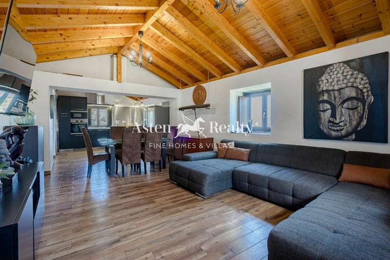 The house consists of a spacious living room with an open-plan kitchen, fully equipped with modern appliances. The house has three well-lighted bedrooms, two bathrooms and a laundry room. The house also has two additional rooms with windows which are currently used as a storage room and gym, but could easily be converted into additional bedrooms or other types of rooms according to the buyer’s needs.