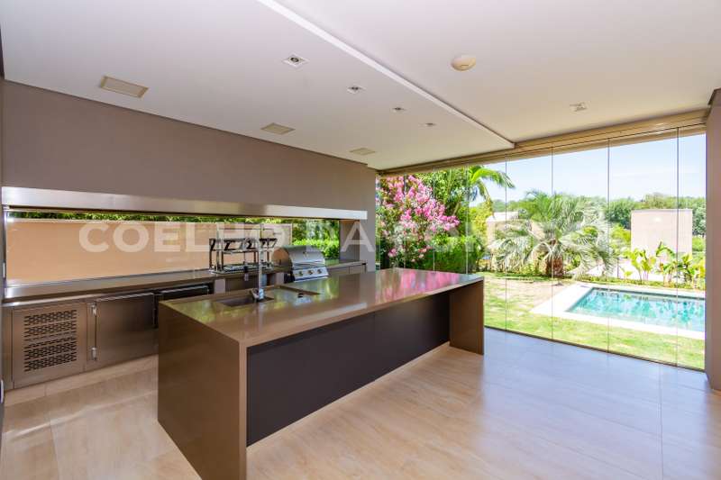 No nivel social a residência dispõe de escritório, uma belissima sala de TV com sitema de som embutido além de iluminação especial para momentos de cinema, living amplo e com integração ao maravilhoso espaço gourmet voltado para a piscina com jardim incriivel e uma vista impar.