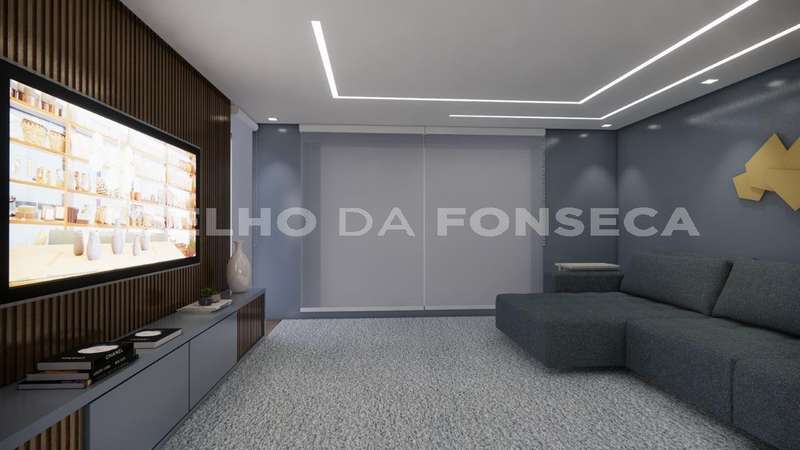 Na parte do estacionamento, além das vagas já estipuladas, possuí um vão livre (fechado com drywall) com +/- 100m2 o qual será construído um enorme são de jogos com espaço de tv.