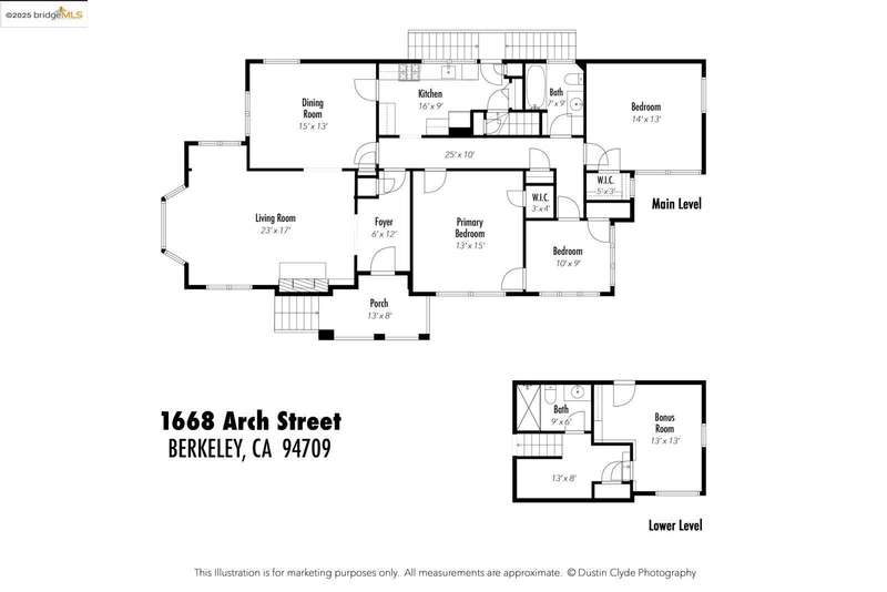 1668 Arch Street features 3 bedrooms, 2 bathrooms, and a bonus room*, thoughtfully arranged to balance function and flow. Natural light filters through abundant windows, animating the interiors and highlighting defining details such as graceful archways and a central stone fireplace. Formal living and dining areas offer generous scale and proportion, while rich, refinished hardwood floors provide warmth and continuity throughout the main spaces. The 5,504 sq ft lot* extends the living environment with lawns, a stone patio, and garden areas that create a sense of openness and visual harmony. Just minutes from UC Berkeley, North Shattuck, Downtown Berkeley, and Tilden Regional Park, the home combines considered design with easy access to Berkeley’s most desirable amenities. Buyer to investigate.