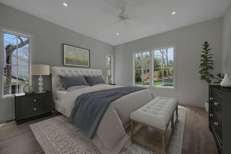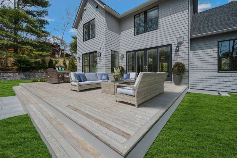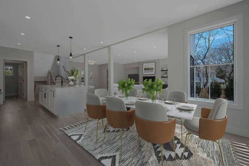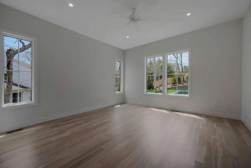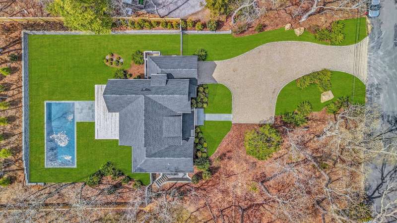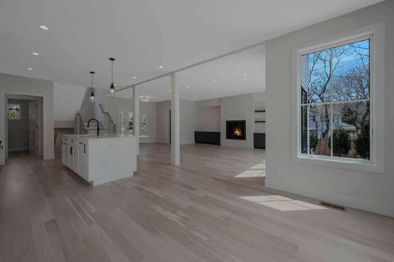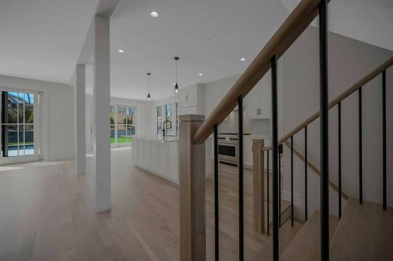 Traditional new construction with a blend of modern luxury and timeless sophistication from renowned builder, Forst & Silverblank. Located in the private beachfront community of Barnes Landing. 5 bedrooms and 4-and one-half baths. It boasts high-end finishes and custom design touches. There are 9-foot plus ceilings on the first level, 4-inch-wide white oak floors throughout, high-end custom cabinets, Quartz countertops, wired for sound, and much more! Light and open floor plan with gas fireplace. First-level primary bedroom with steam shower. Finished lower level with bedroom, bath, and entertaining area. 16ft by 36ft heated gunite pool with bluestone patio, large outdoor deck area, and extensive landscaping.