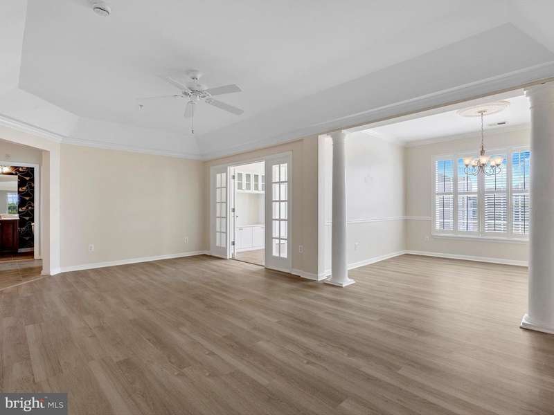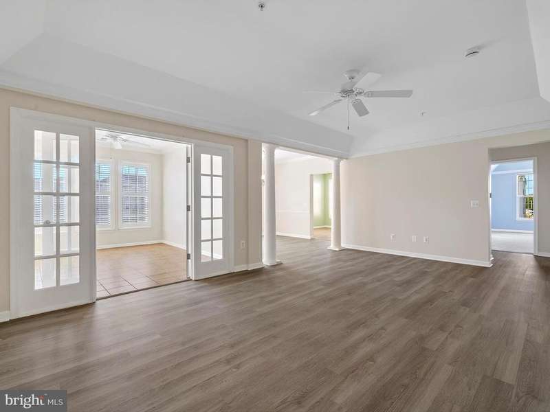 *** CHECK OUT THE NEW LVP FLOORING! *** START PACKING! *** A 3rd floor, 3 Bedroom, DOGWOOD model - 1,900 sq. ft. , the largest model in The Gatherings! This spacious Condo is full of natural light, thanks to its corner location with windows on three sides. A full wall of plantation shutters adds charm, while glass-paned French doors lead to a cozy Sun Room, complete with a built-in entertainment center. Enjoy tray ceilings in both the Living Room and the Primary Bedroom, adding subtle architectural interest. The Primary Suite also features a walk-in with custom designed closet organizer, plus a bath with a soaking tub and a separate shower with a built-in bench. The second bedroom is nicely sized, and the third bedroom offers a full wall of closet space designed by California Closets - great for guests, crafts, or a home office. Each of the three bedrooms, the living room, and the sunroom are equipped with ceiling fans, helping to keep things comfortable year-round. The kitchen features Silestone countertops, Merrilat cabinets, and a recently installed glass-top induction stove (2024). A separate pantry offers shelves and bins for easy storage. The Breakfast Room is the perfect spot to start your day. The HVAC system and Water Heater were replaced in 2020. This Condo also comes with a garage space and a tandem parking space that conveys with the sale. The garage has an epoxy-coated floor and custom storage features to help keep things neat and functional. But the real bonus? All of this comes with access to the amenities at The Gatherings at Forest Glen that is only steps away - including a clubhouse, fitness center, game and hobby rooms, outdoor pool and patio, and more. You'll also enjoy the broader Piney Orchard community, offering walking and biking trails, an indoor pool and hot tub, and tennis and basketball courts. A Quick Recap of Why You'll Love It * Spacious, light-filled Dogwood floor plan -the largest available * Windows on three sides and a separate sun room * Thoughtful upgrades like tray ceilings, crown moldings, chair rail, and California Closets * Garage space with storage and epoxy finish flooring * Access to a full range of amenities and activities in a 55+ setting * Located in the heart of Piney Orchard, close to shopping, dining, and more It's a warm, comfortable space with just the right touches!